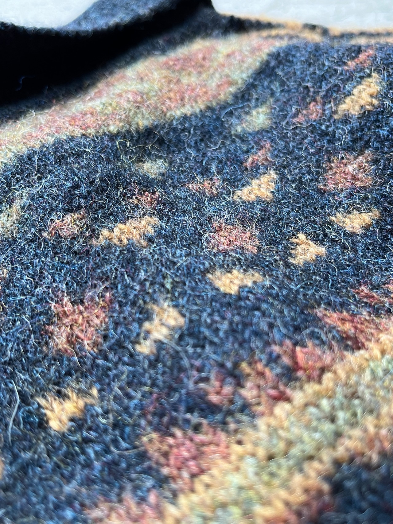 毛足長めなウールに総柄デザインがキュートな一枚。