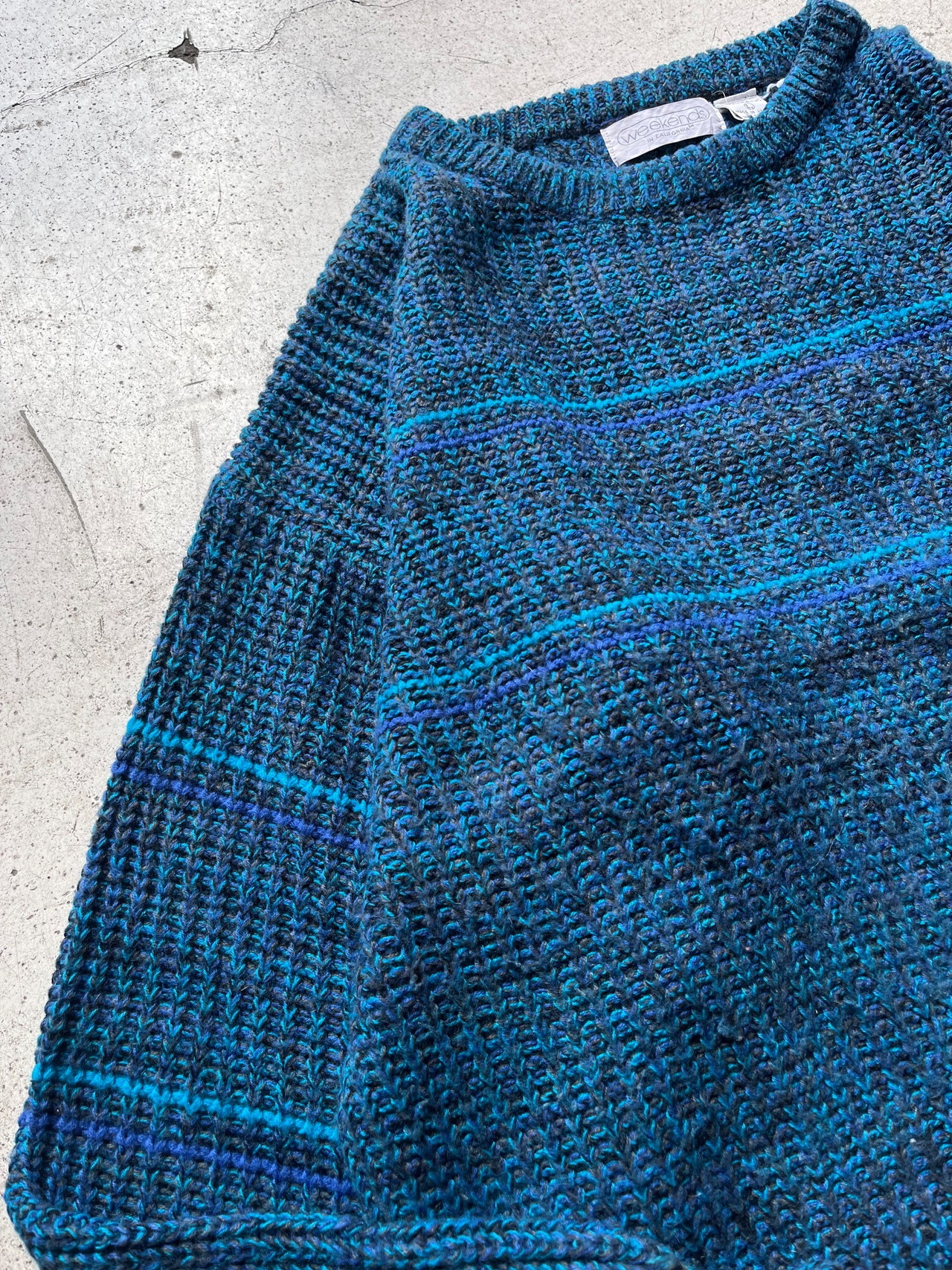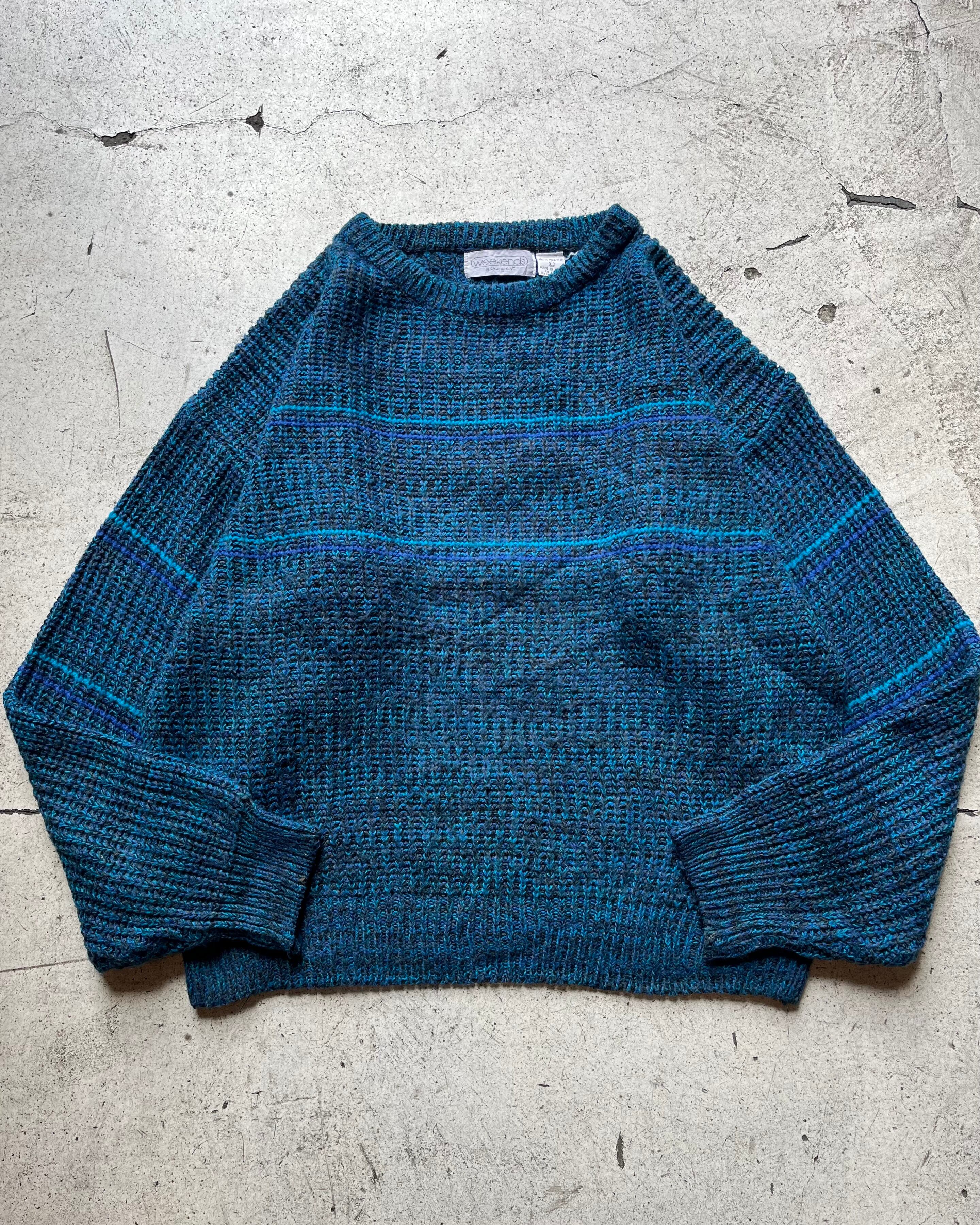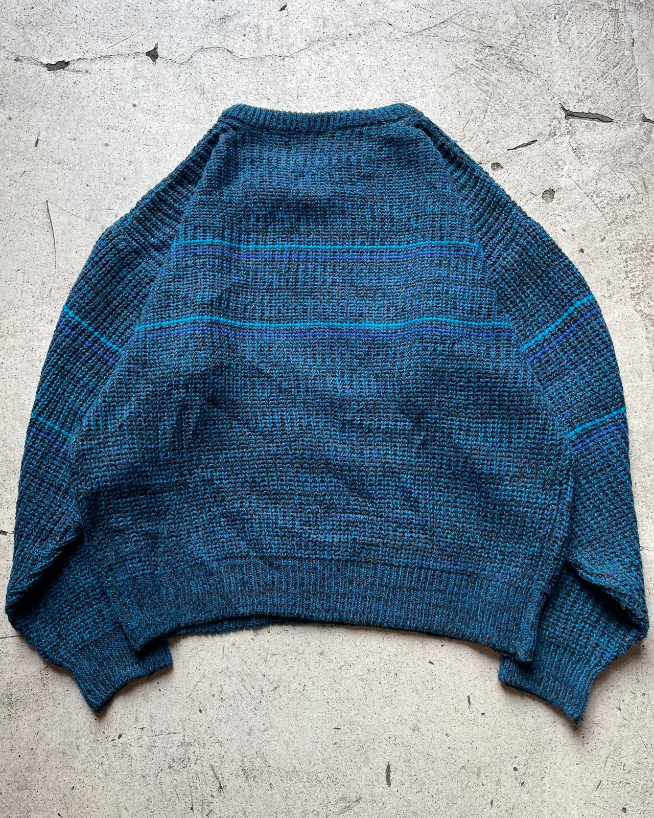 当店でも人気なアクリルリブニットその中でも高配色な混色にやりすぎてない横縞が入った高デザインな1着です。