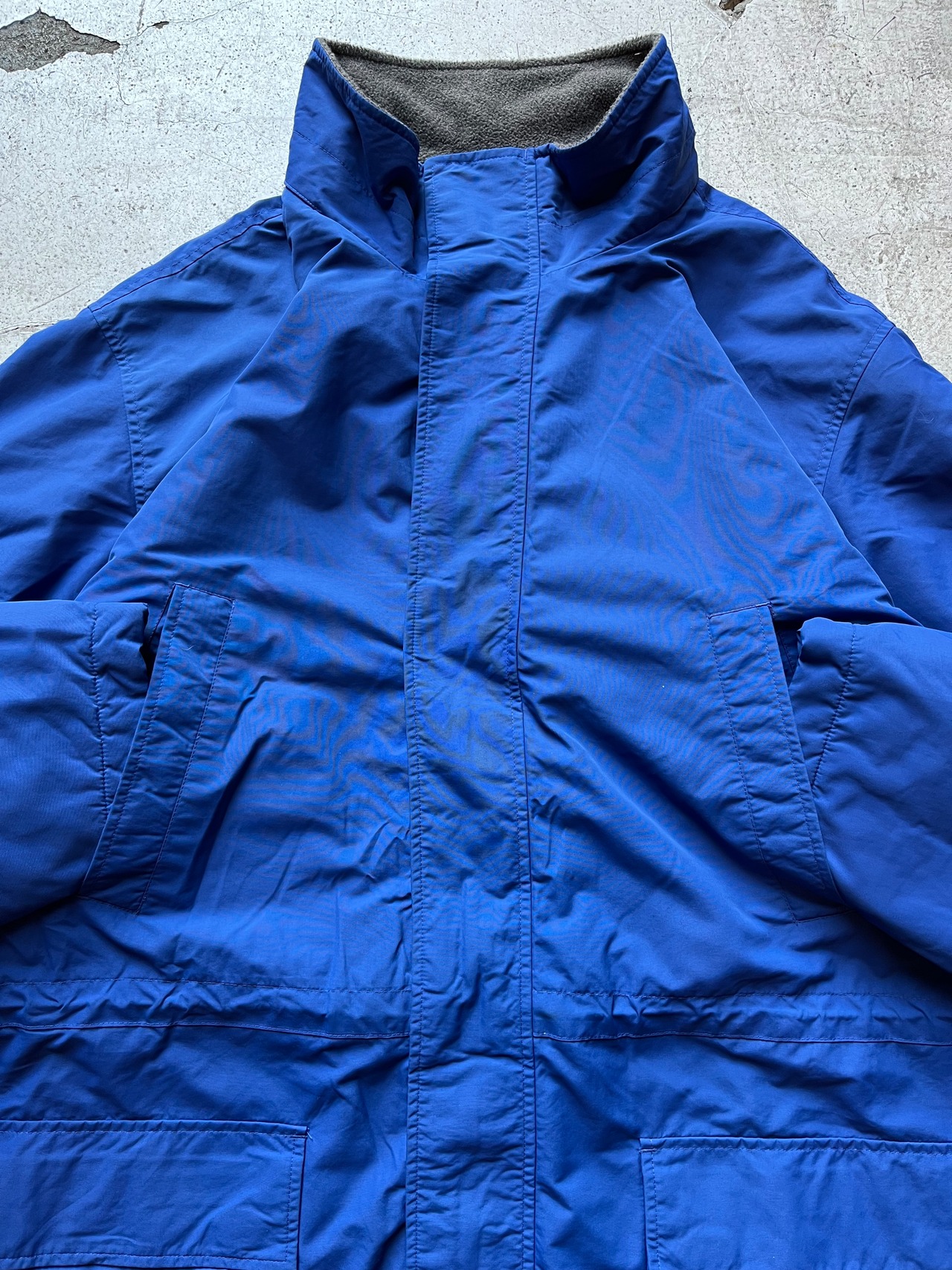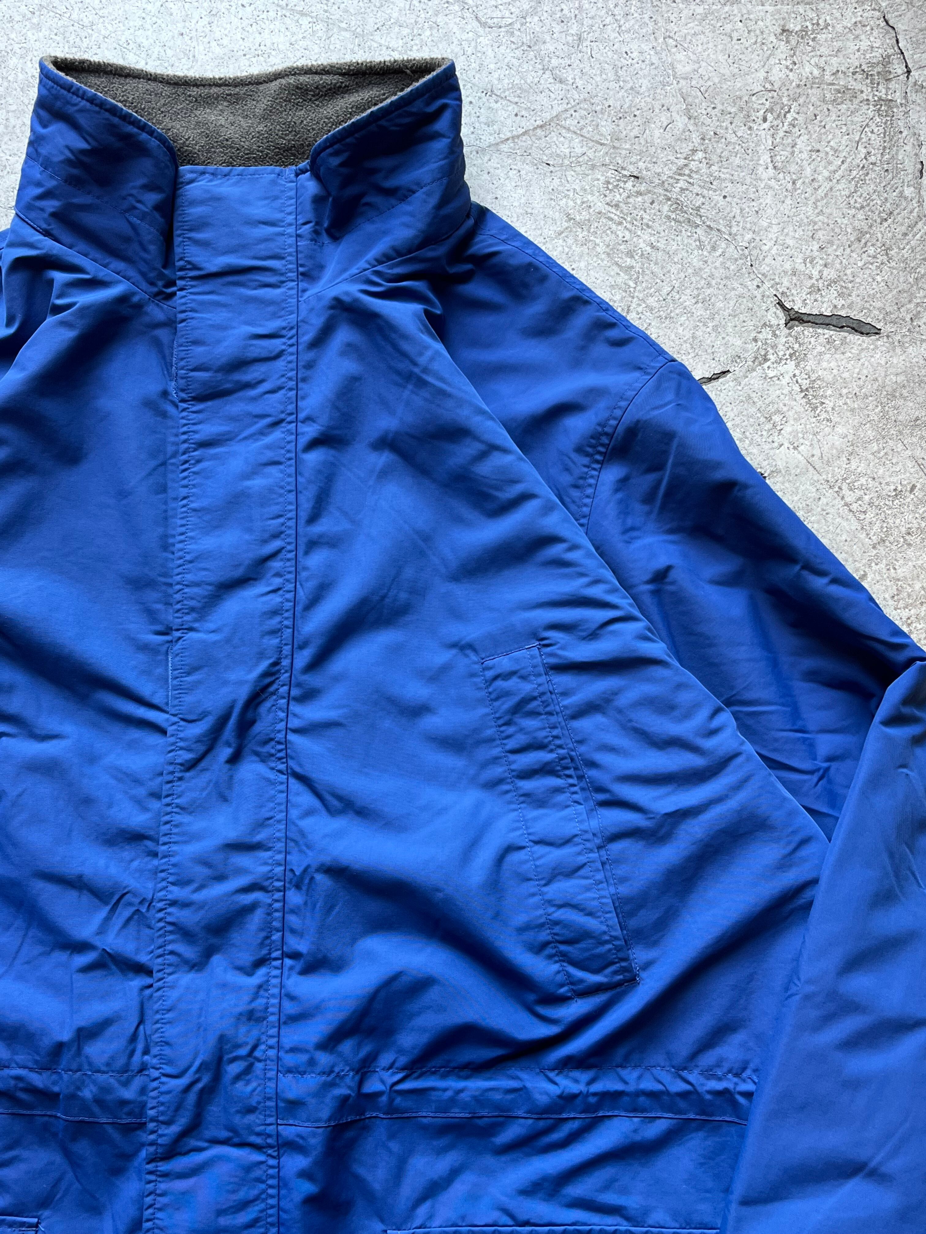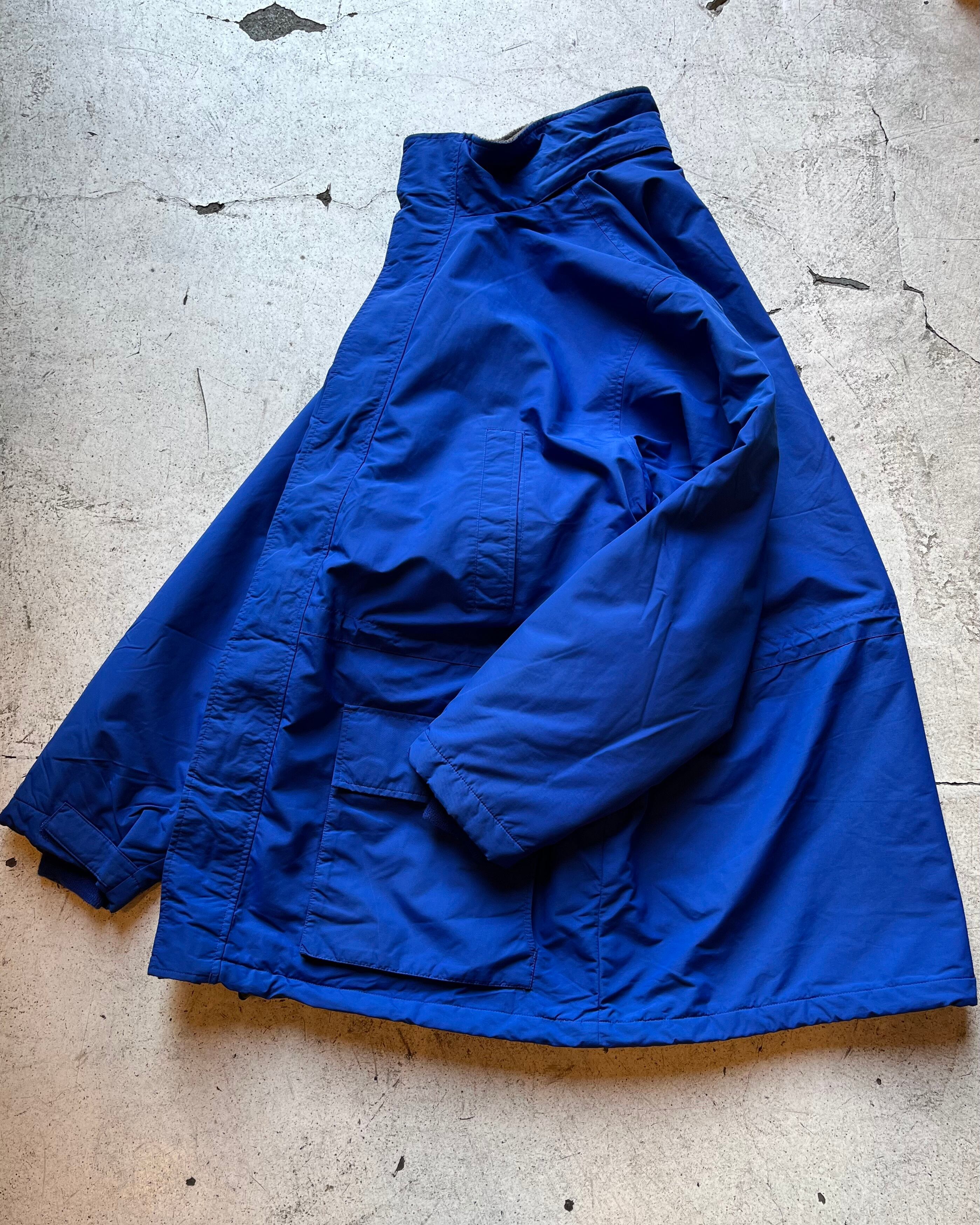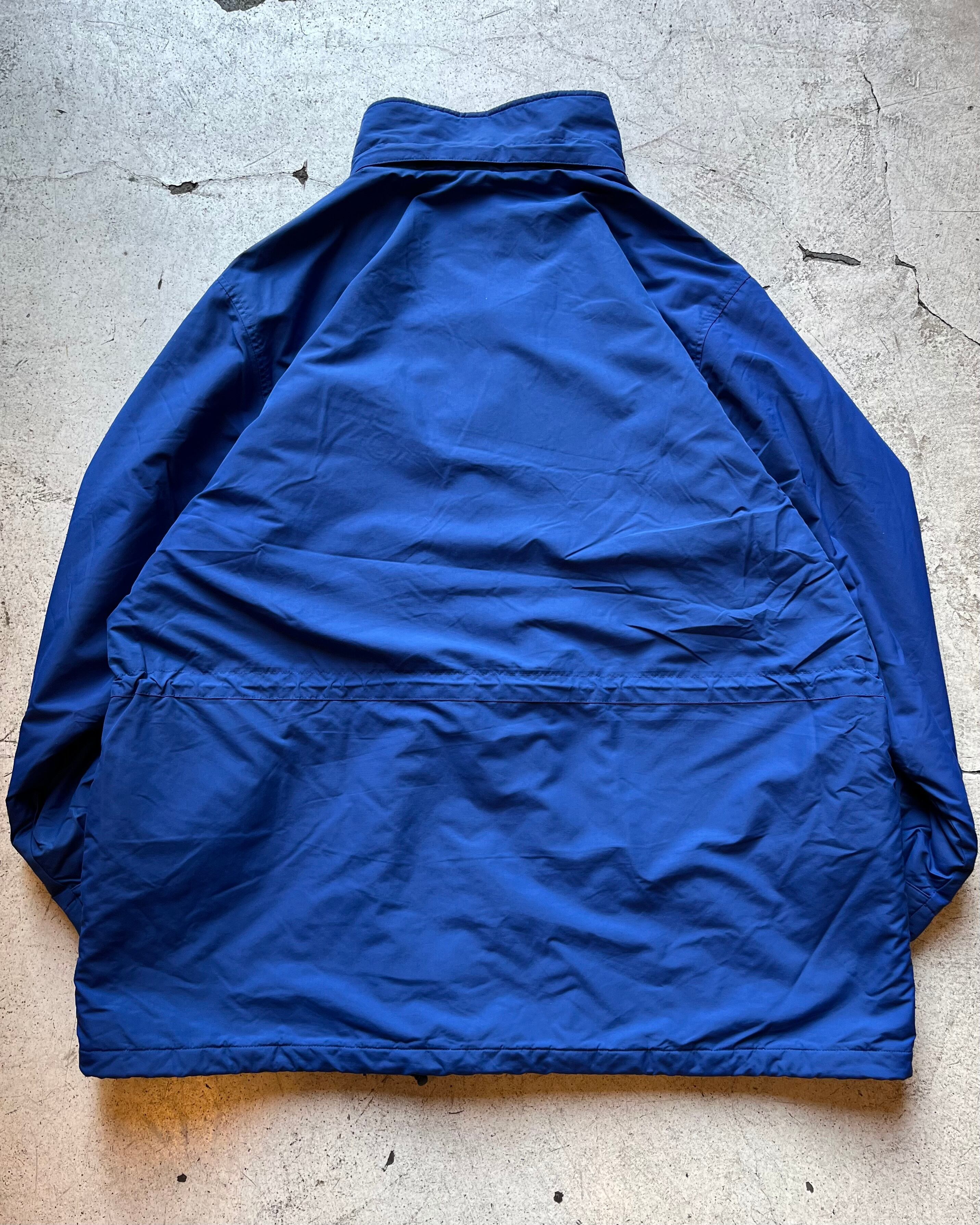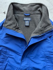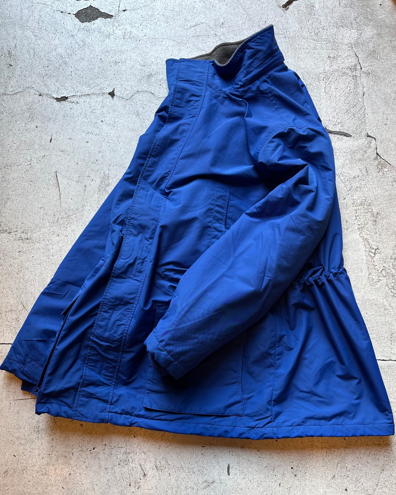 発色良いブルーのナイロンのミドルジャケット、インナーにフリースが取り付けられた防寒性も兼ね備えた一枚です。