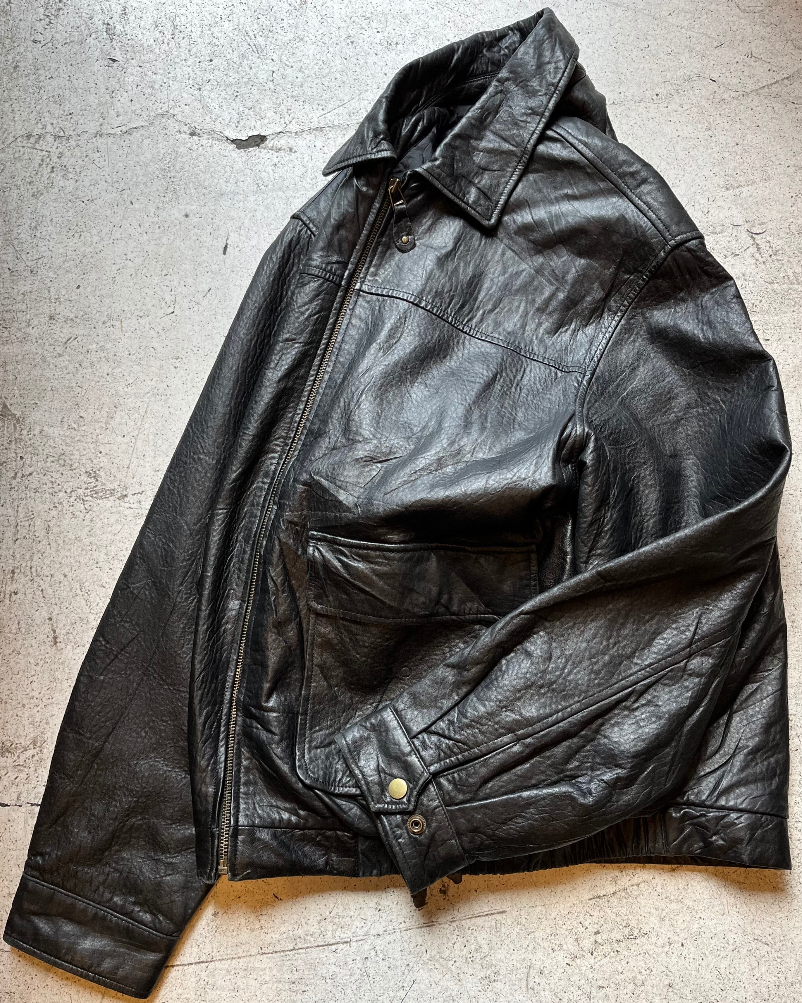柔らかな黒のレザー冬時期はインナー使い本アウターの下に差し込んでもレイヤードを楽しめる一着です。