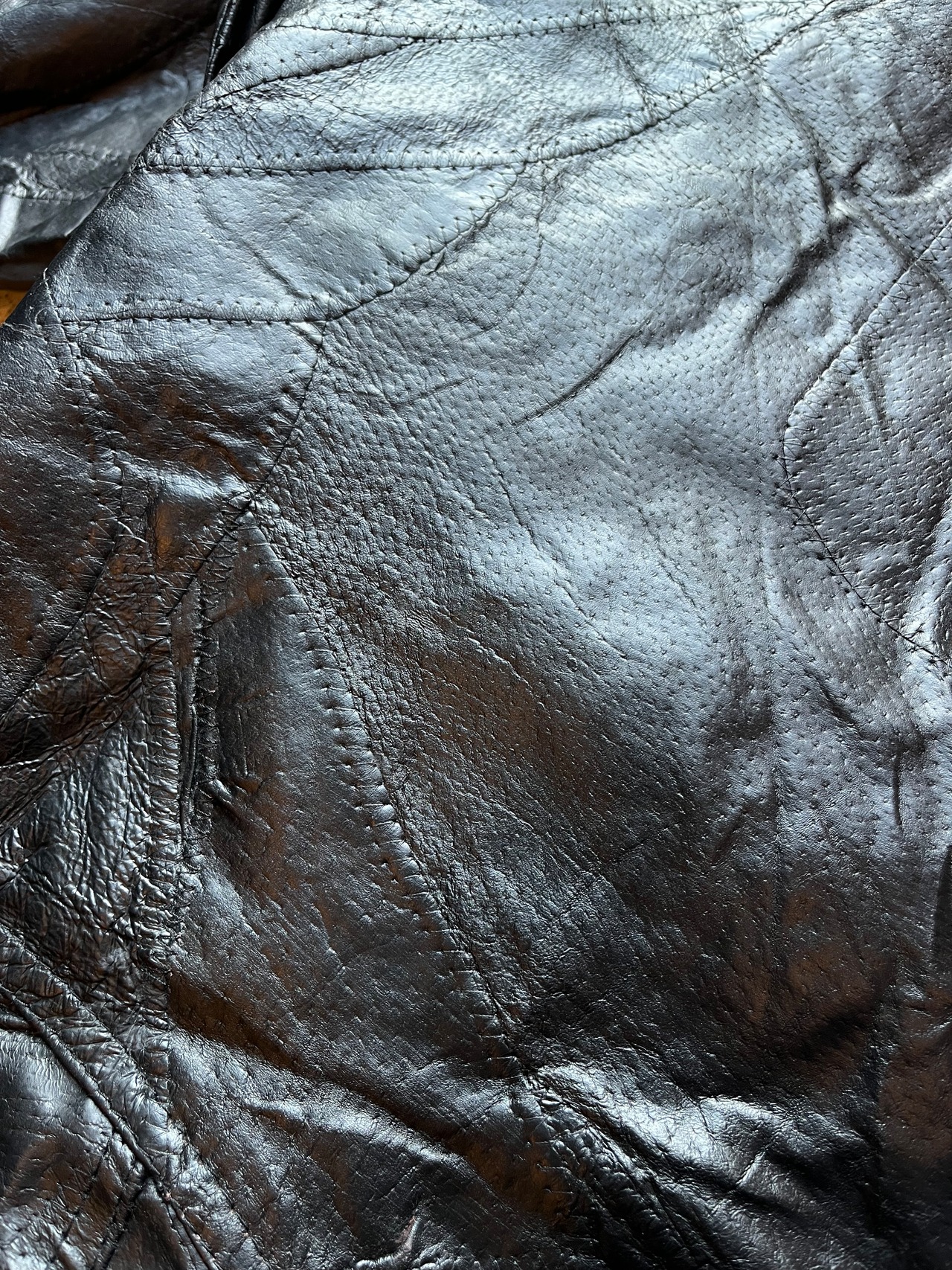 ツギハギのレザーブルゾンデットストック品です。