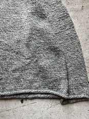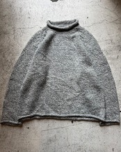 バツっと切りっぱなしのよう作りから首元、袖、裾がクルッと巻かれたデザインの人気なニットウェア