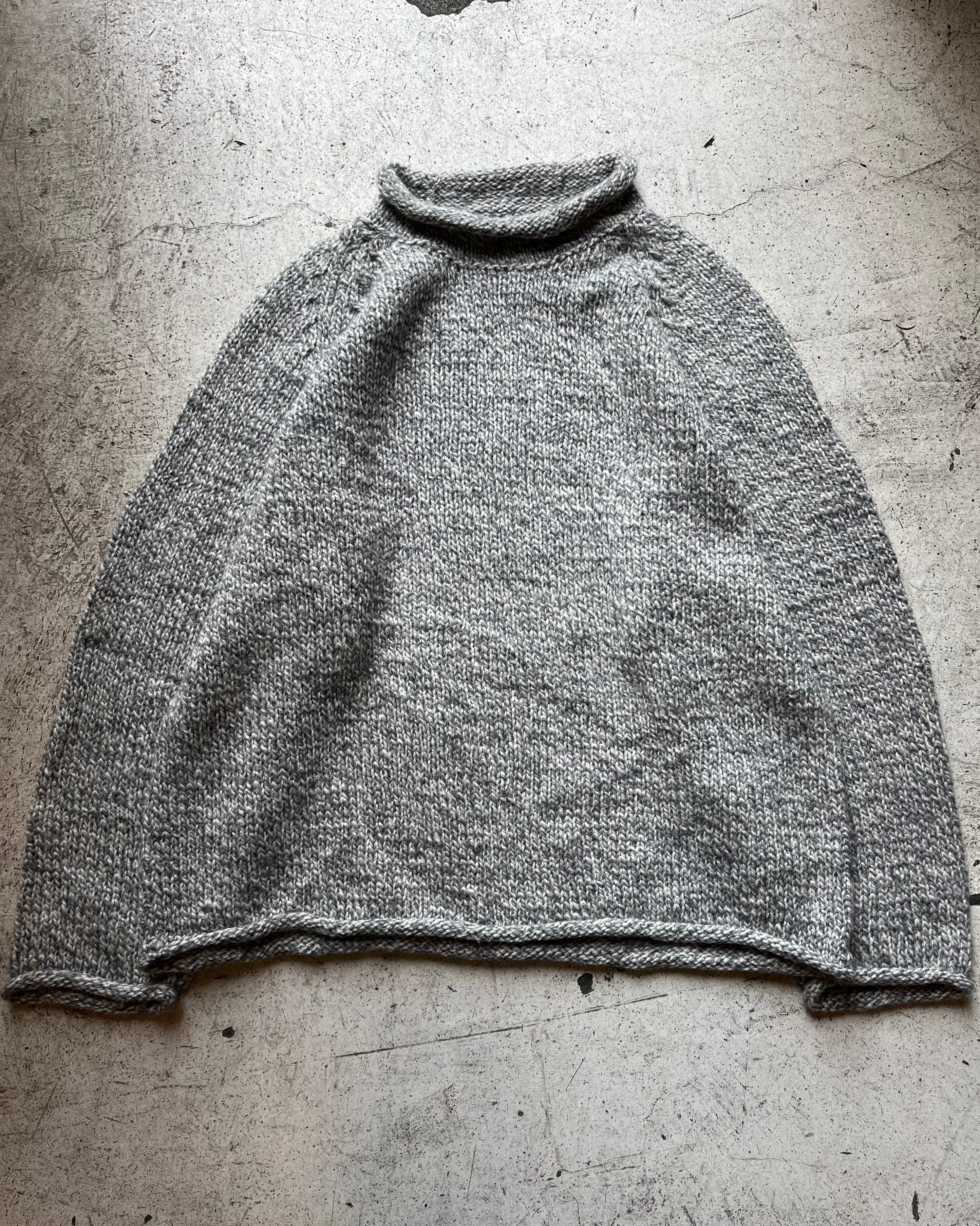 melange design plain rooll neck knit sweat "white&gray"