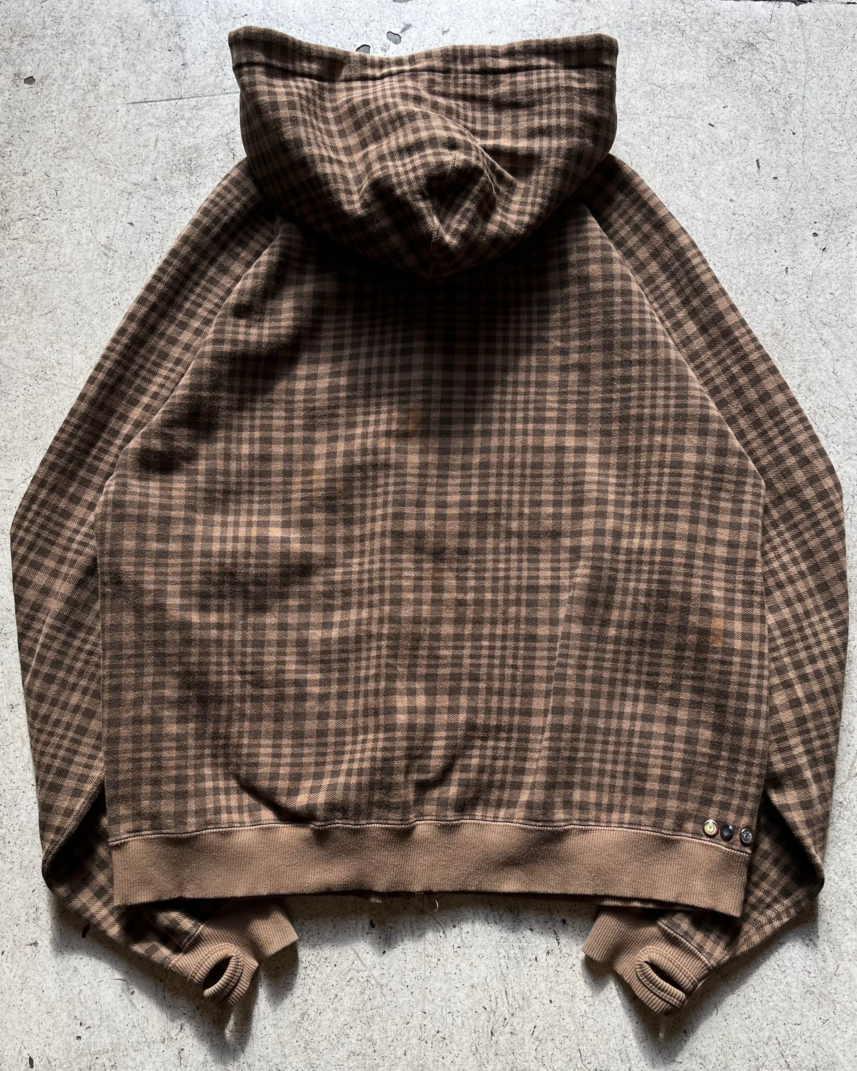 フロントにブランドロゴのデザインが大きく入ったチェックのジップパーカー