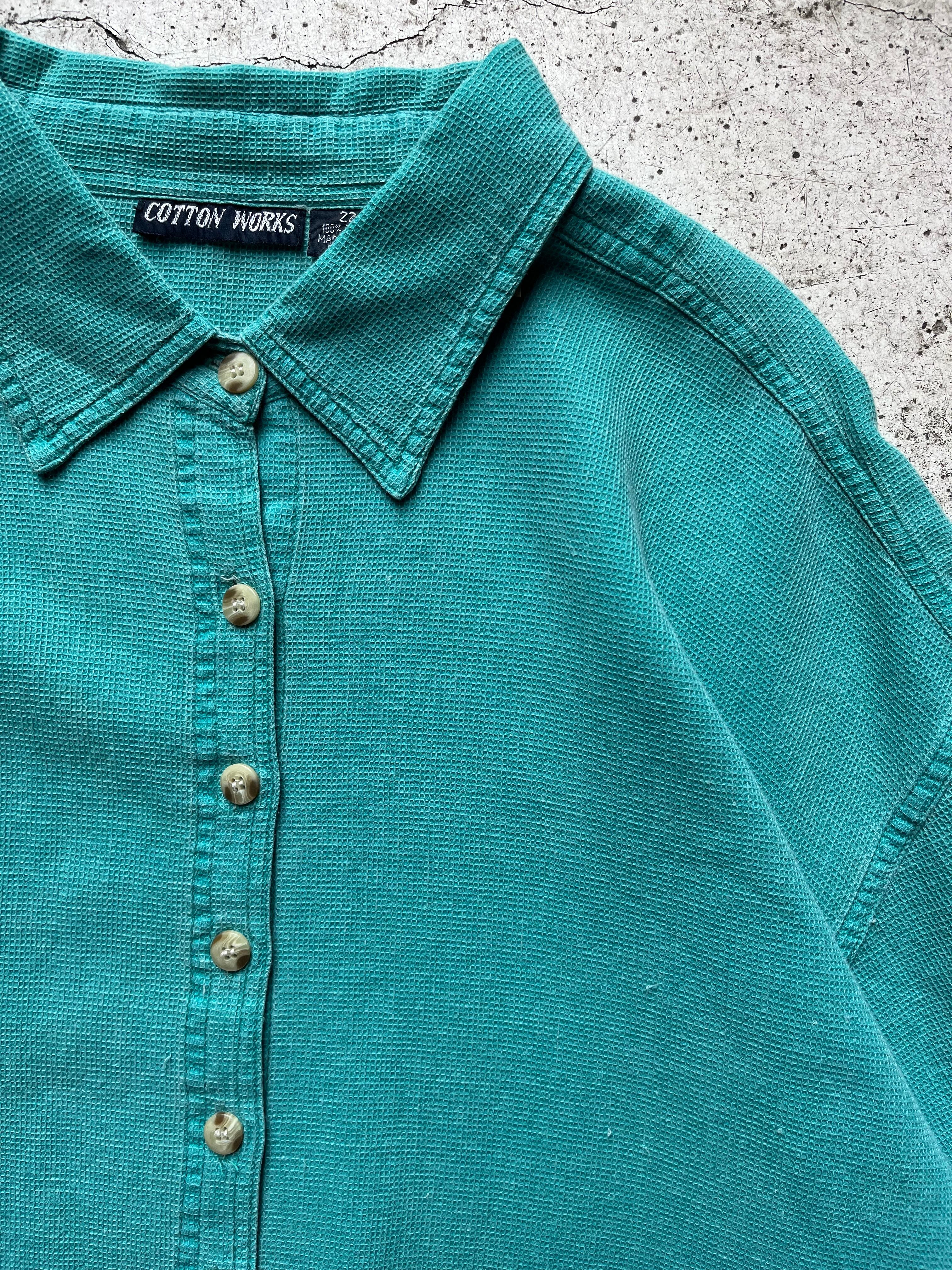 春色なティファニーブルーの色味にこれまたガーゼコットンの軽やかな素材感
