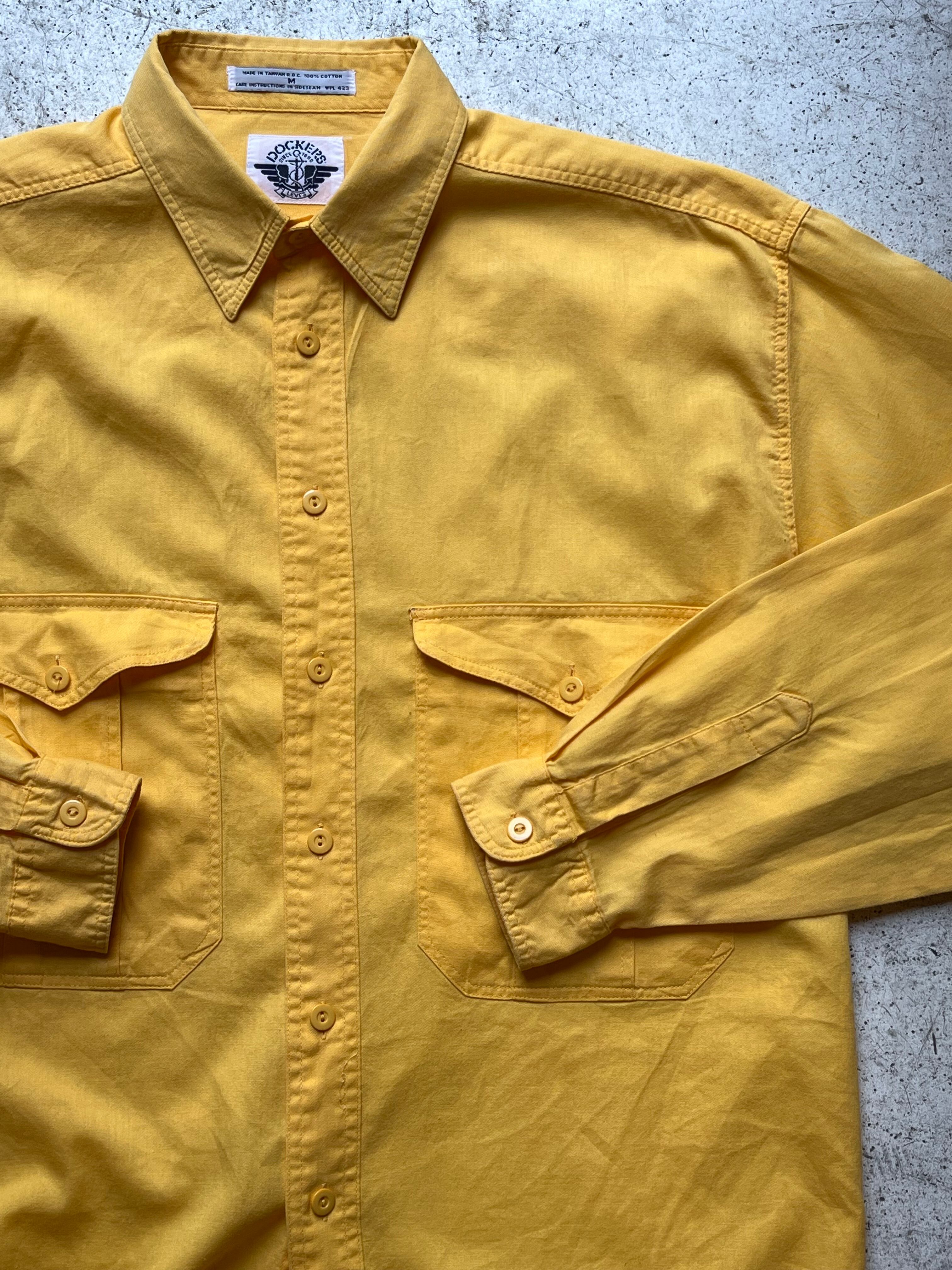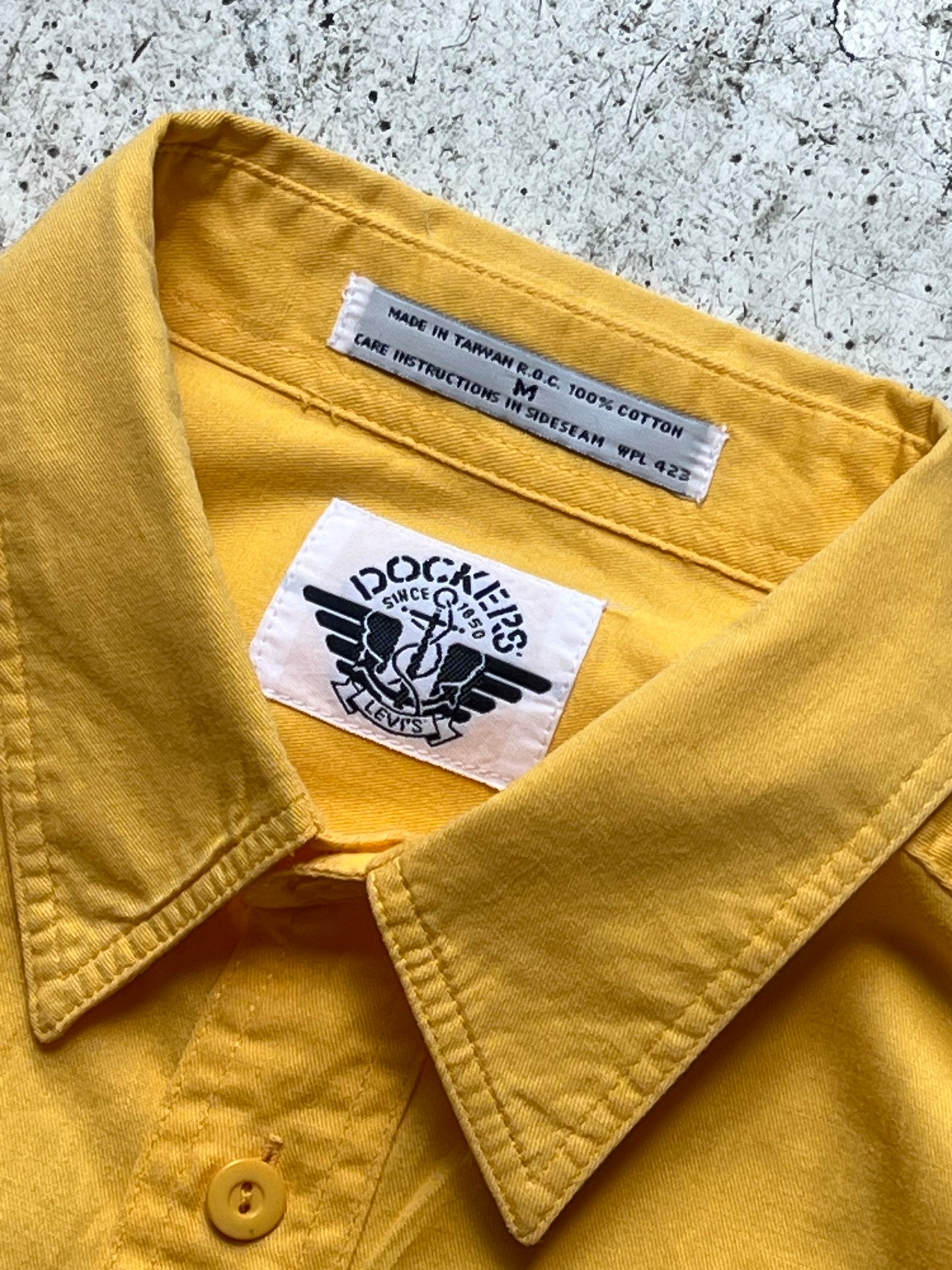 ドッカーズのプレーンシャツ薄めなコットン生地で扱いやすく、スタイリングの差し色などにもってこいな一枚。