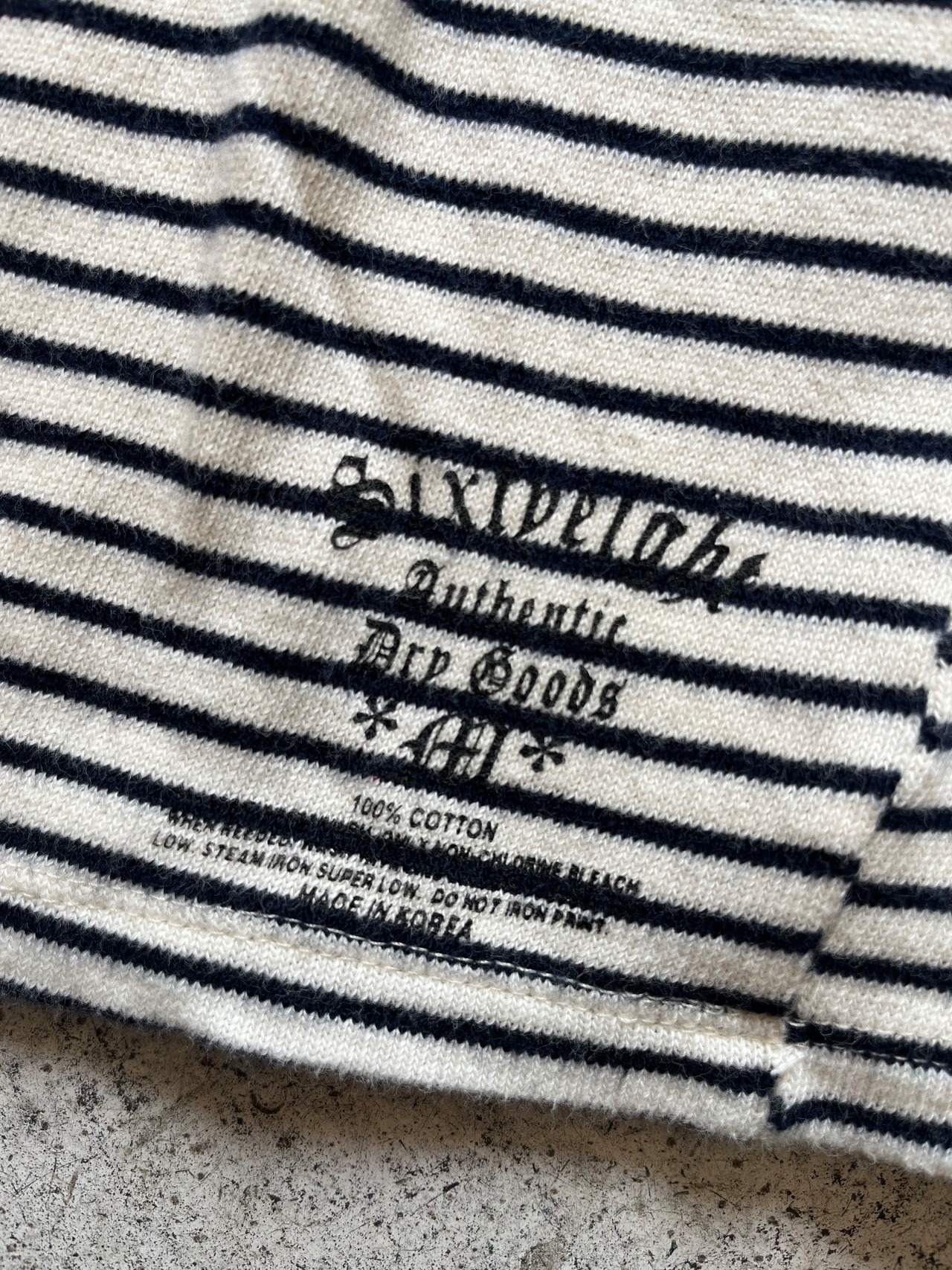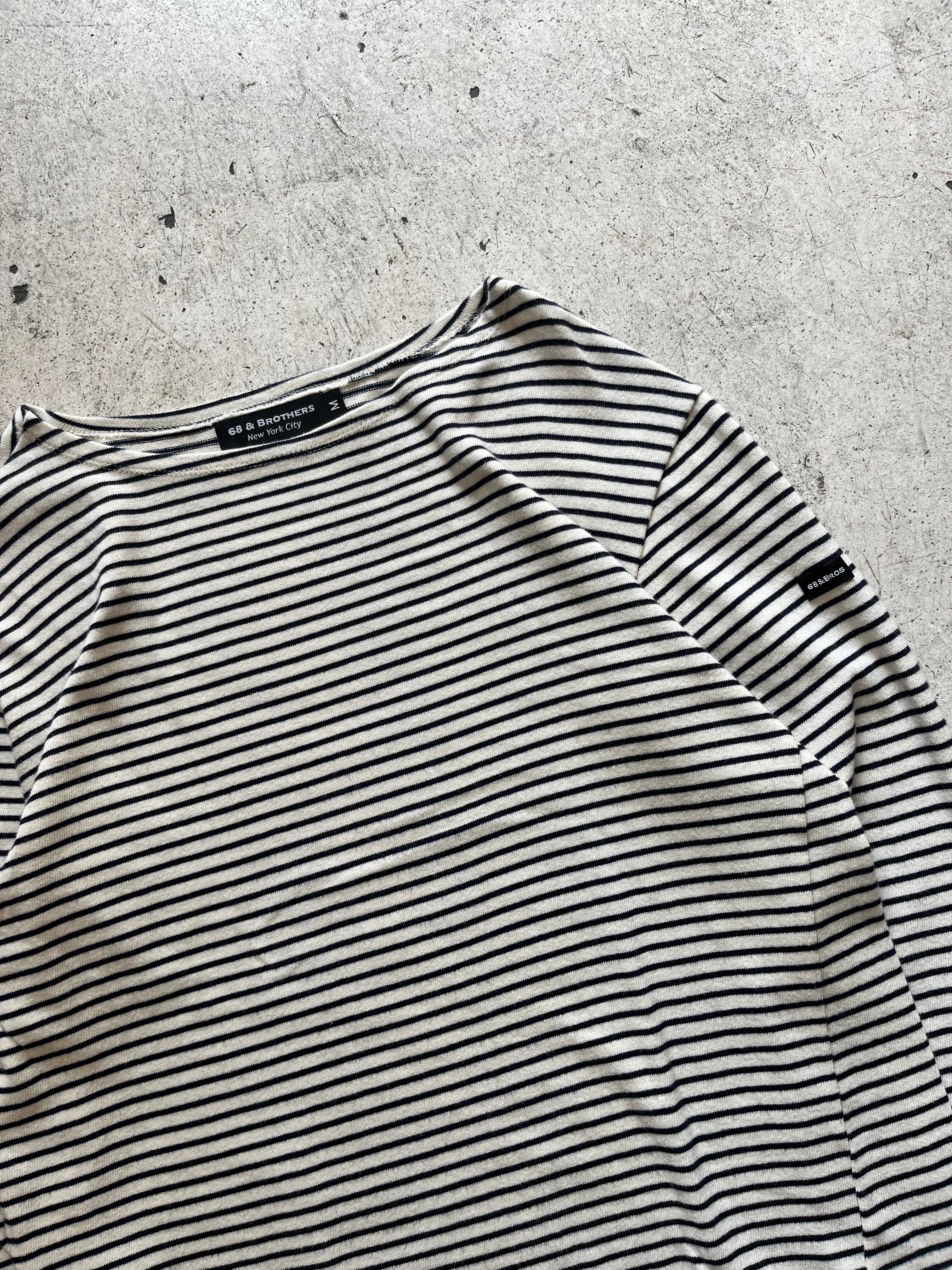 春先のラフな着こなしインナーアイテムとしてぴったりなボーダーバスクシャツ