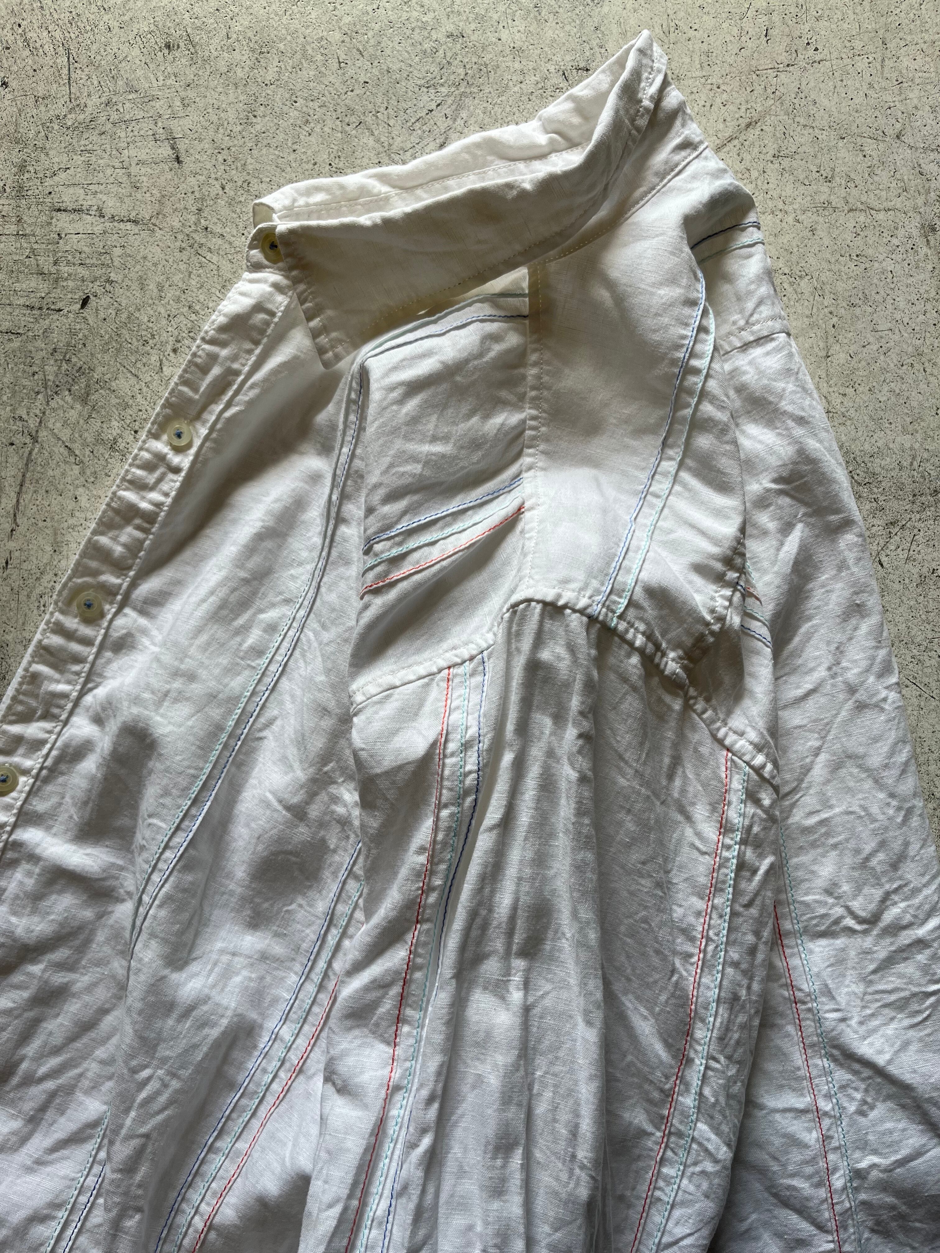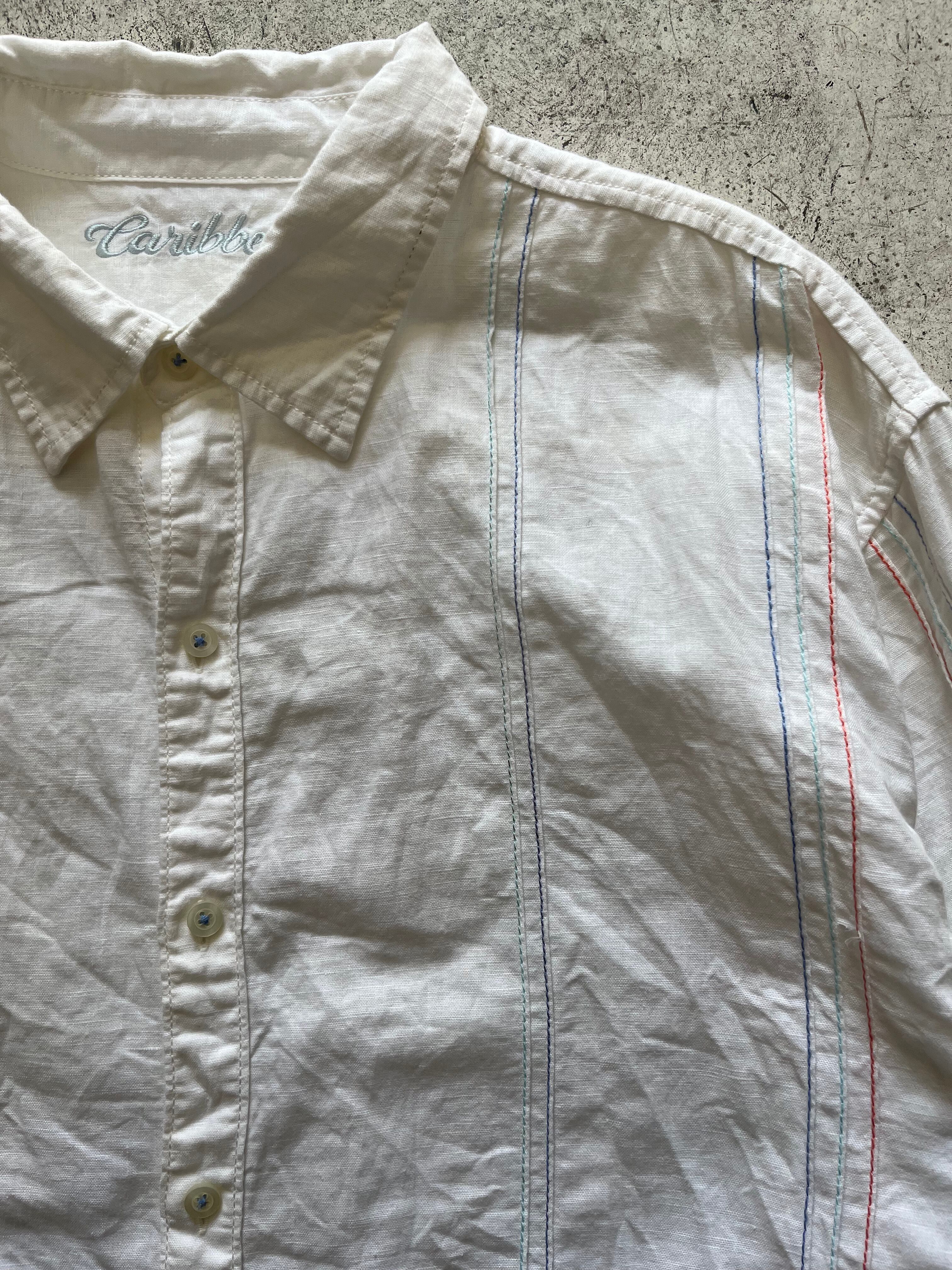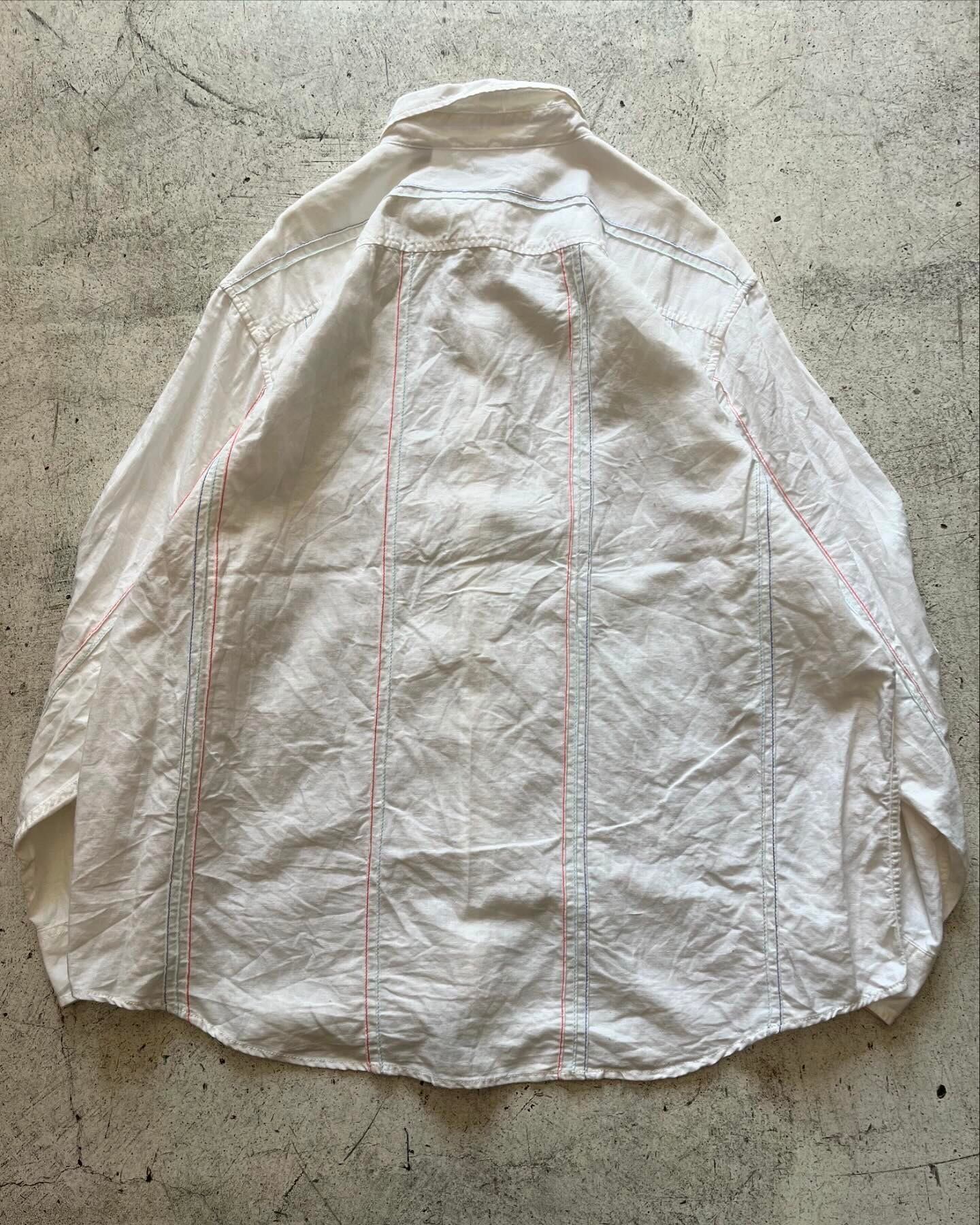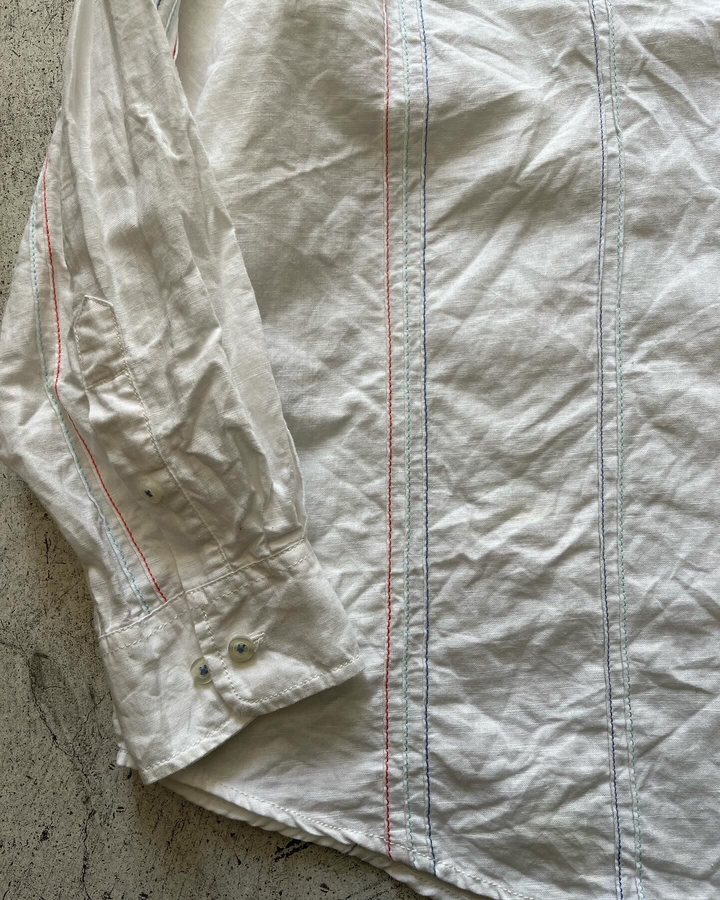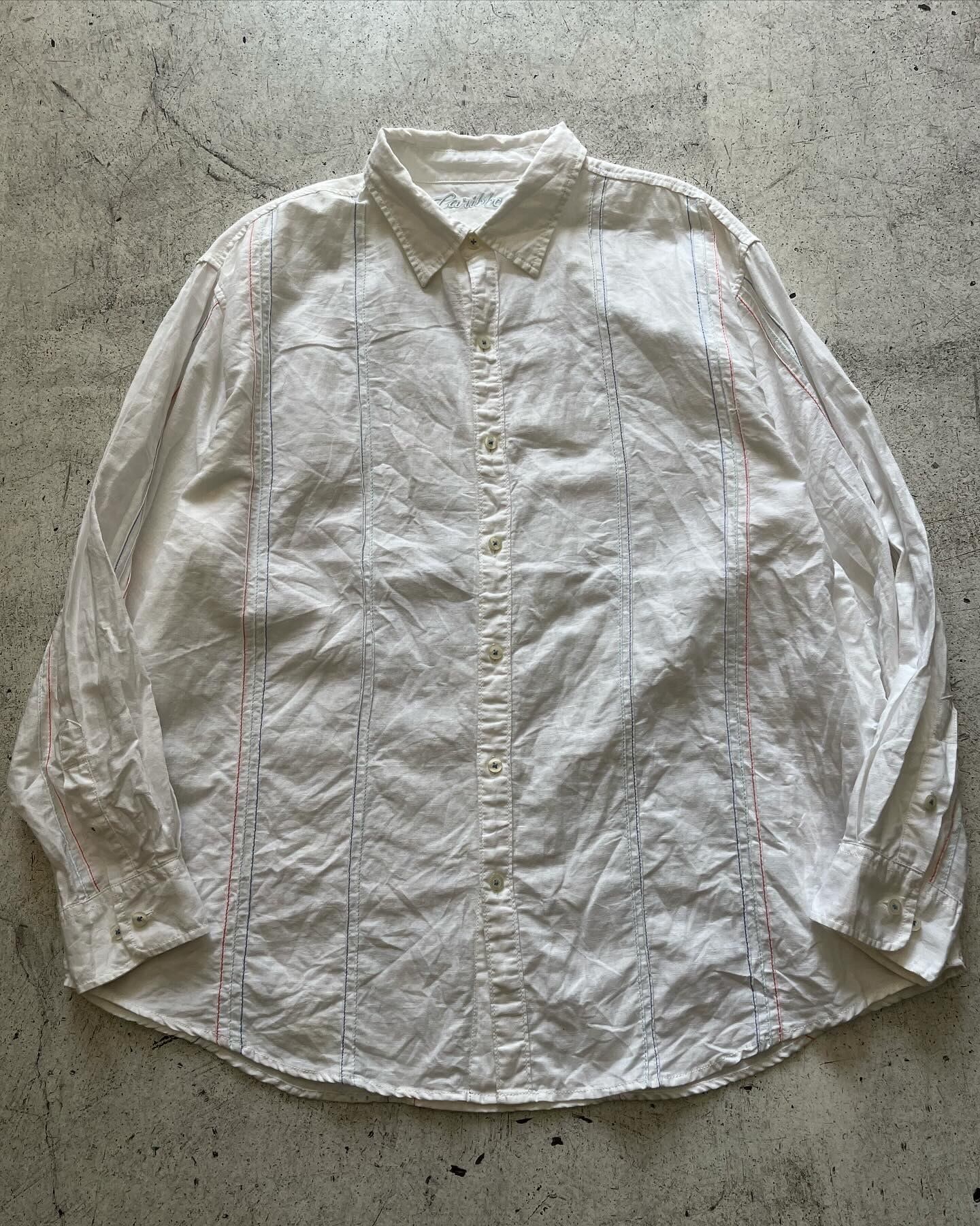 抜け感あるリネンコットンの素材にやりすぎてない縦線なデザインシャツ