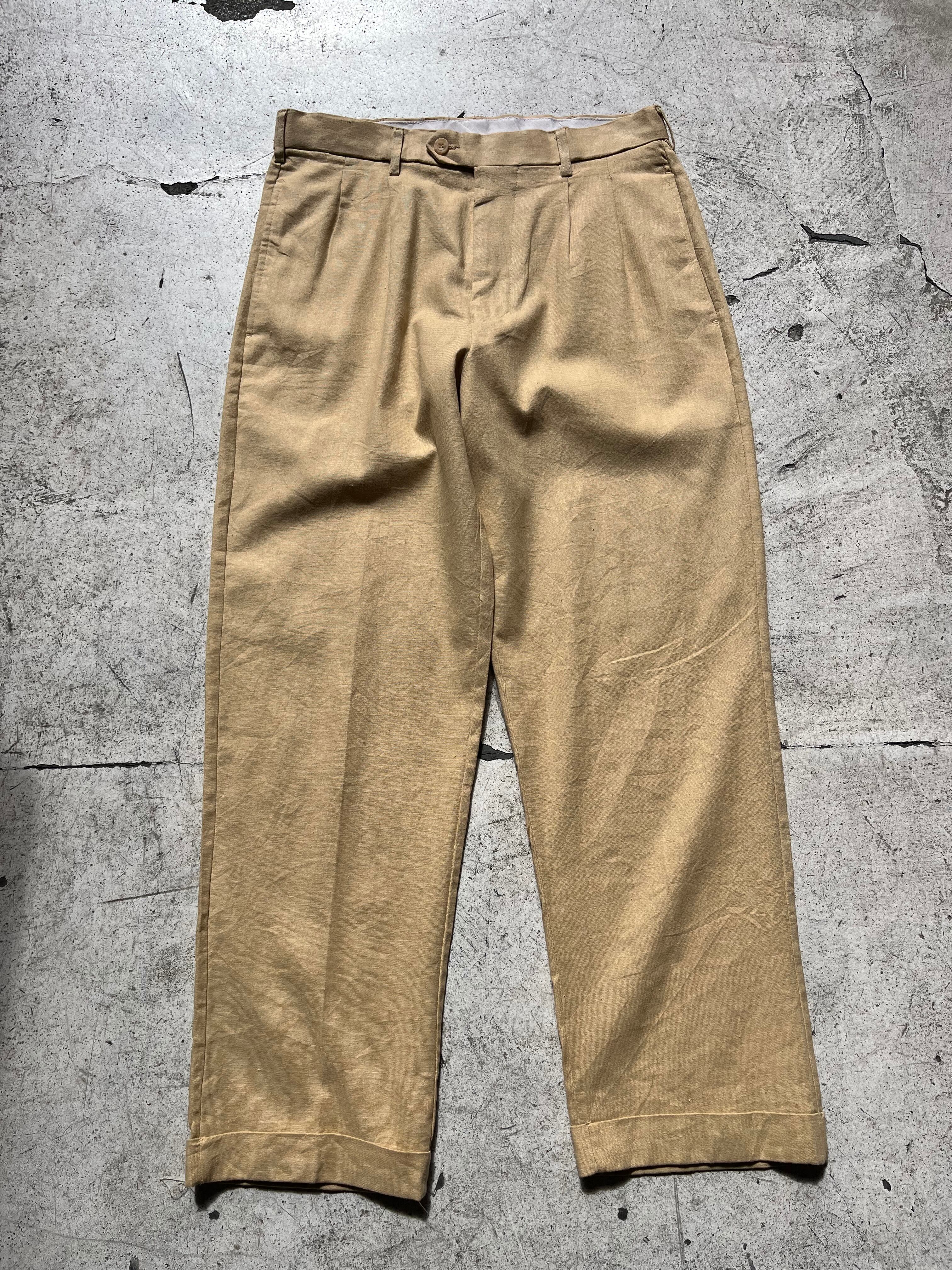 "TRUST" 2tuck linen rayon wide straight slacks