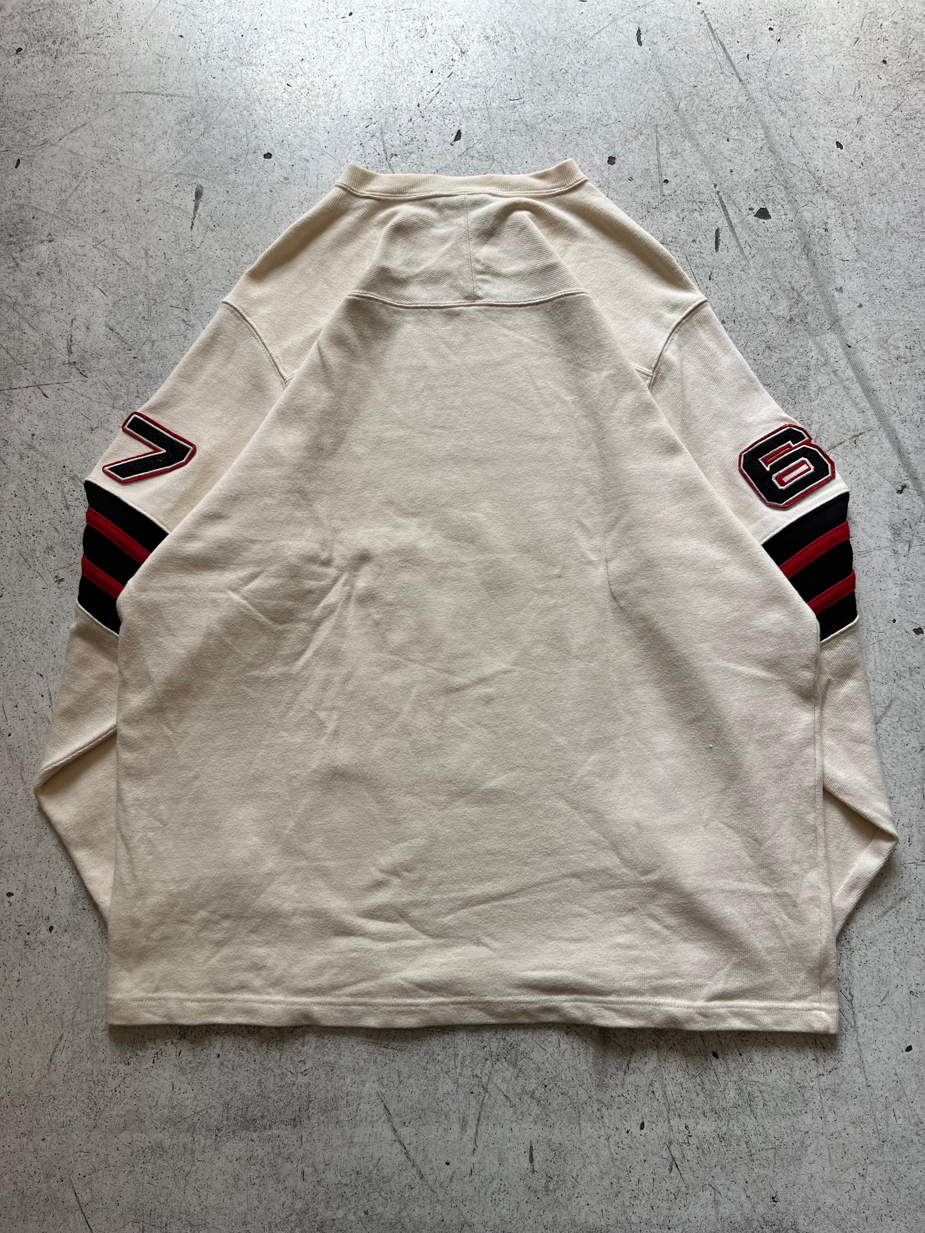 ボディには刺繍デザインと腕にはナンバリングのパッチデザインらしい一着です。