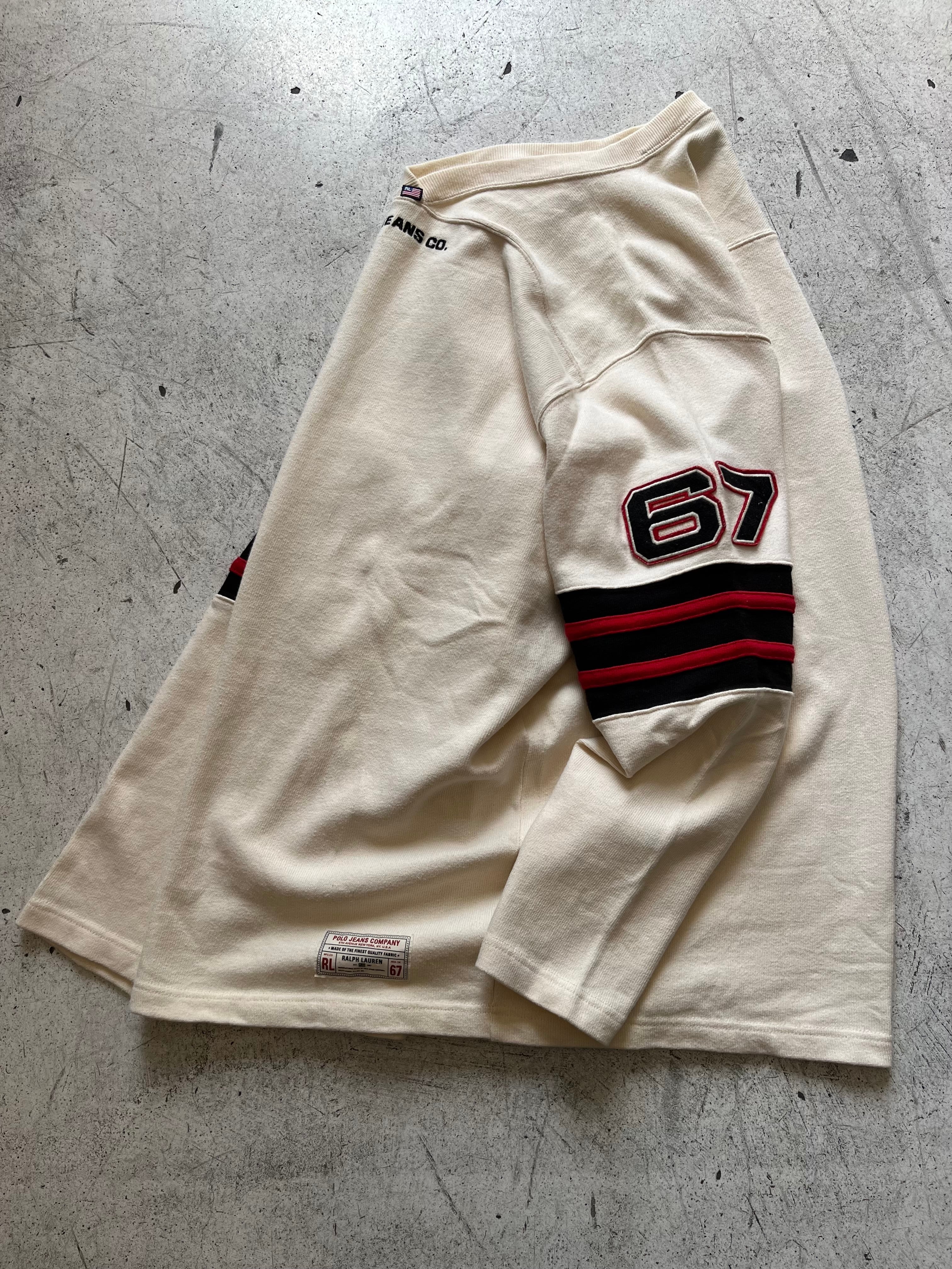 ビンテージゲームシャツをサンプリングしたポロジーンズのコットンニット
