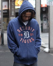 メジャーリーグチームのタイガースのプリントデザインのジップパーカーです。