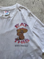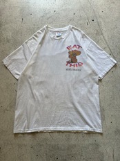 通常サイズよりも大きめなフロントワンポイントとバックプリントも大判なデザインな一枚。