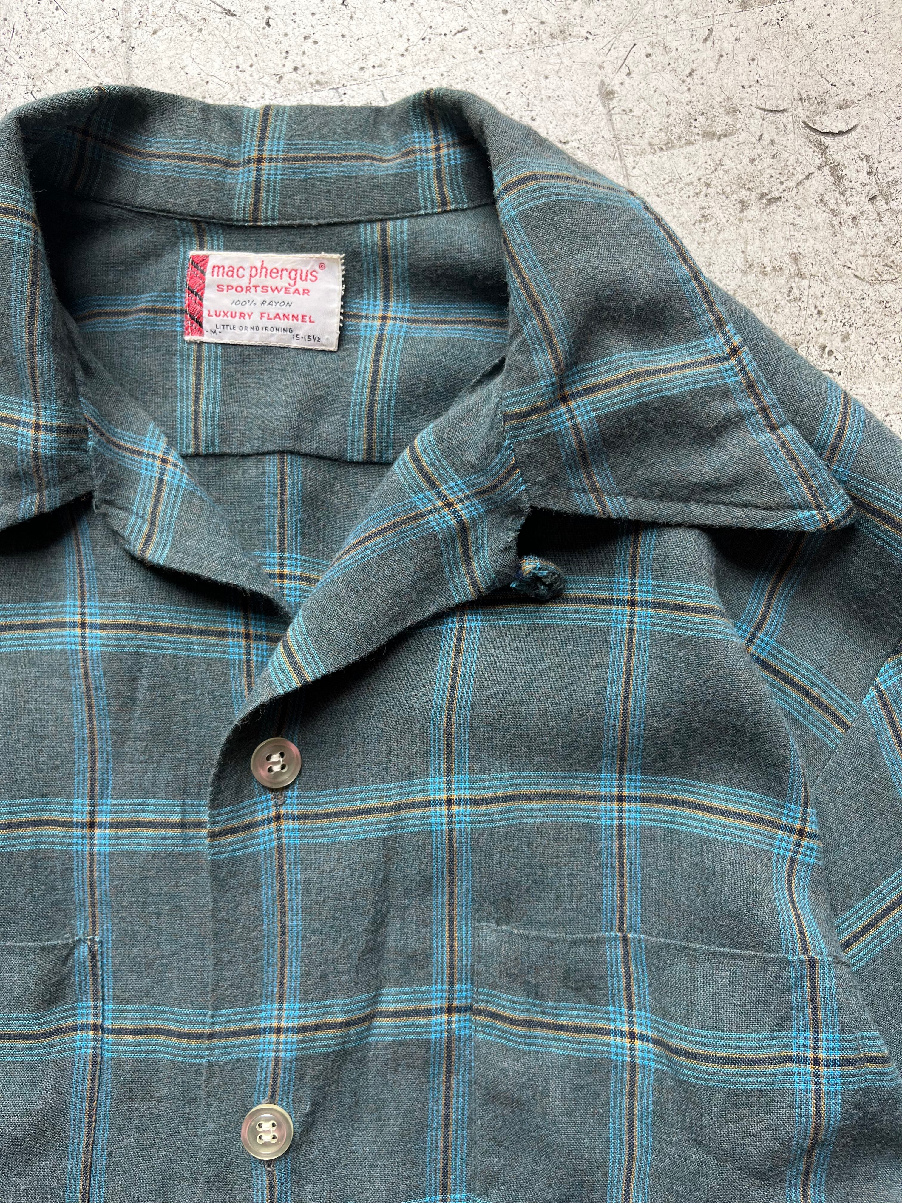70's vintage mac phergus open collar rayon check shirt