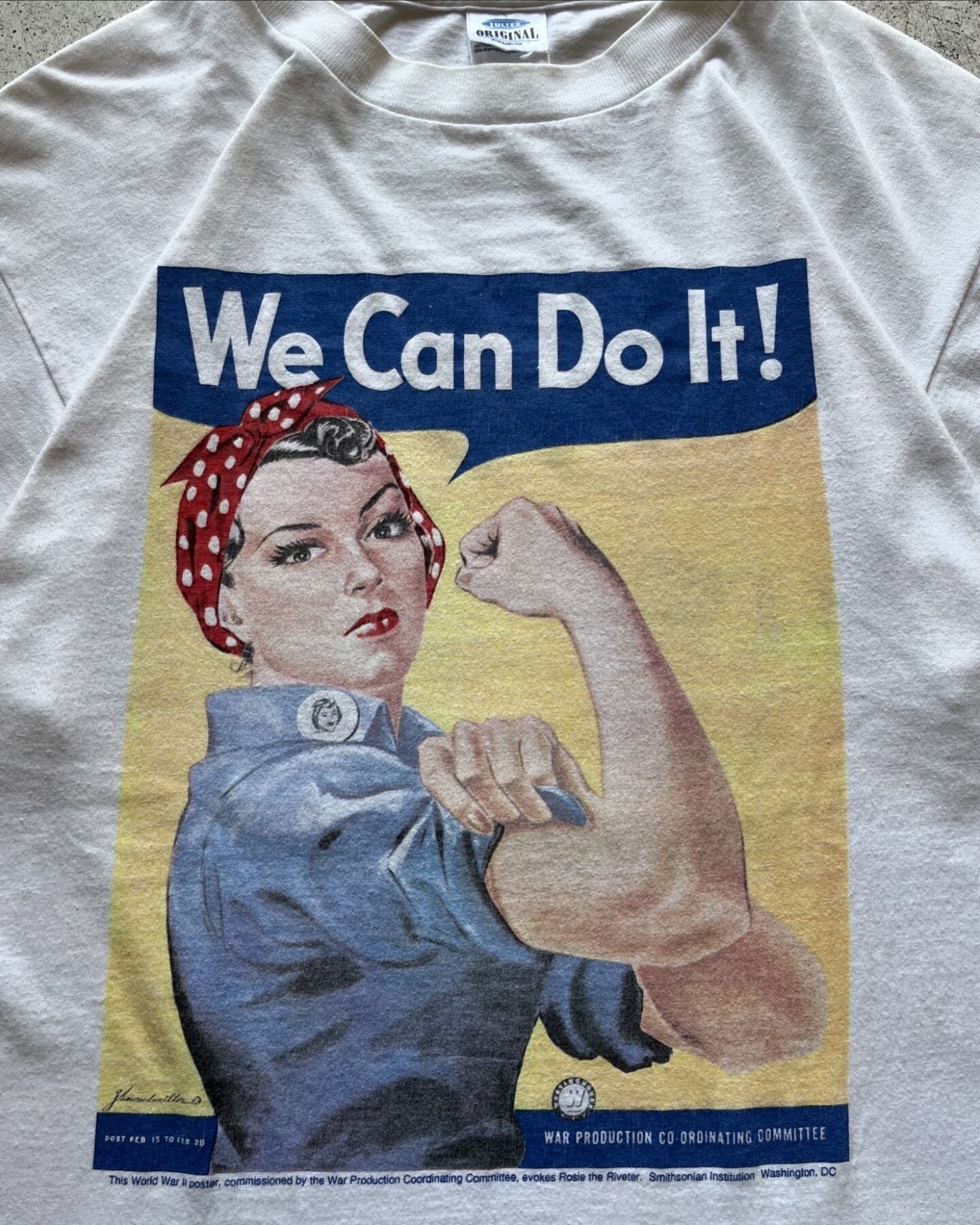 戦時中アメリカでプロパガンダとして用いられたポスターデザインがプリントされたノリの良い一枚。