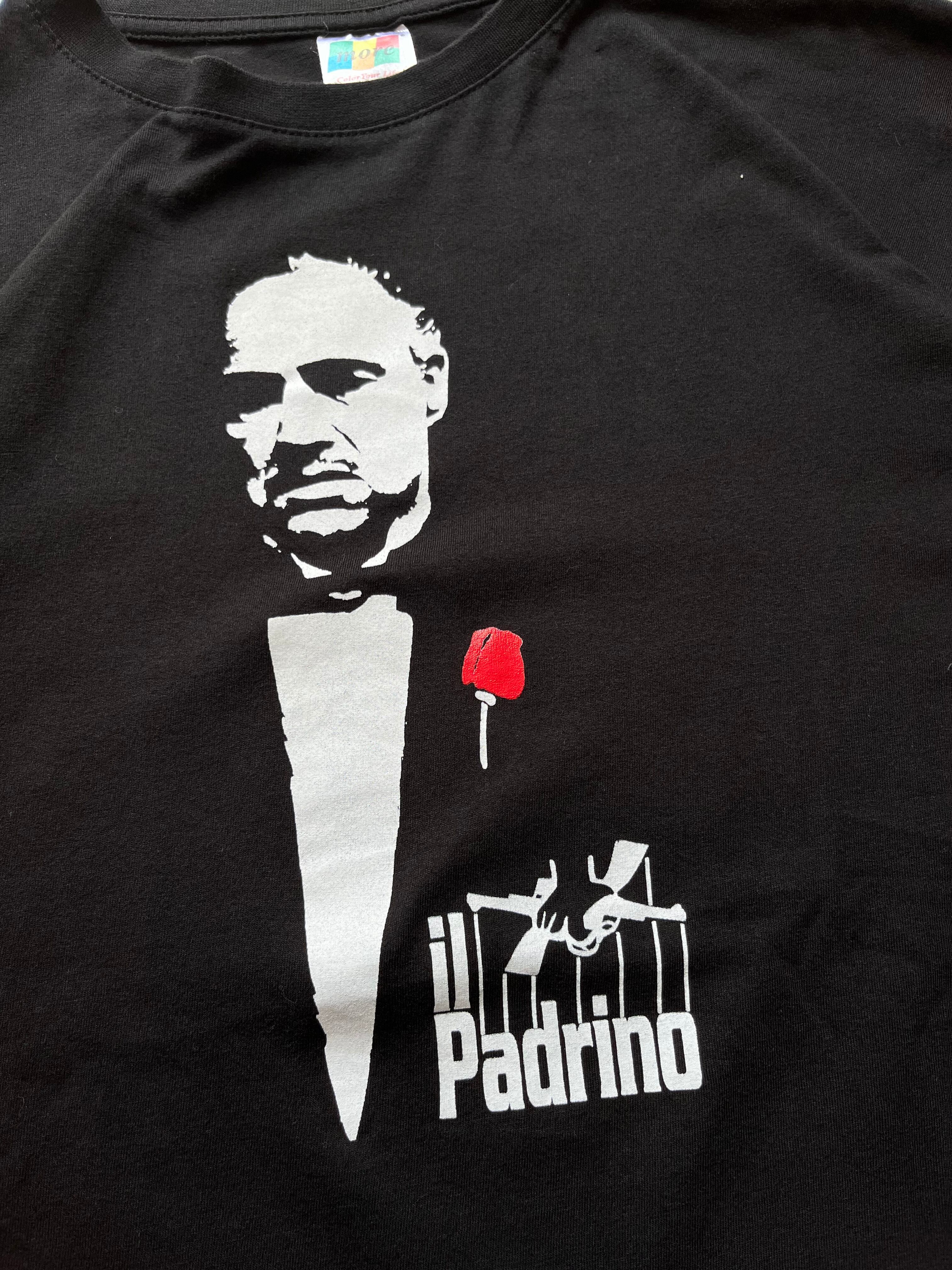コルレオーネファミリー初代ボスの"ヴィトー・コルレオーネ"がプリントされたユーロ企画のゴッドファーザーtee