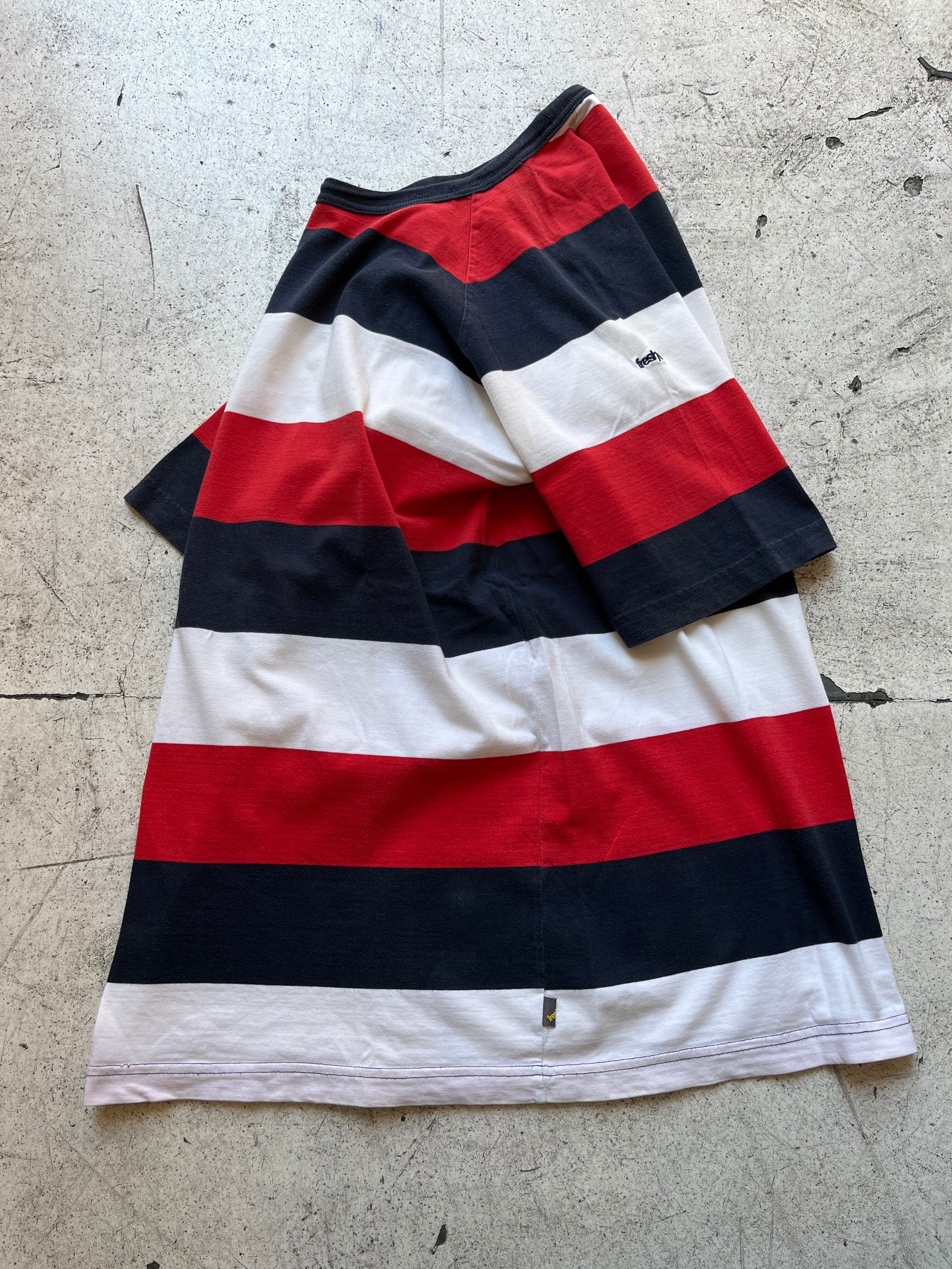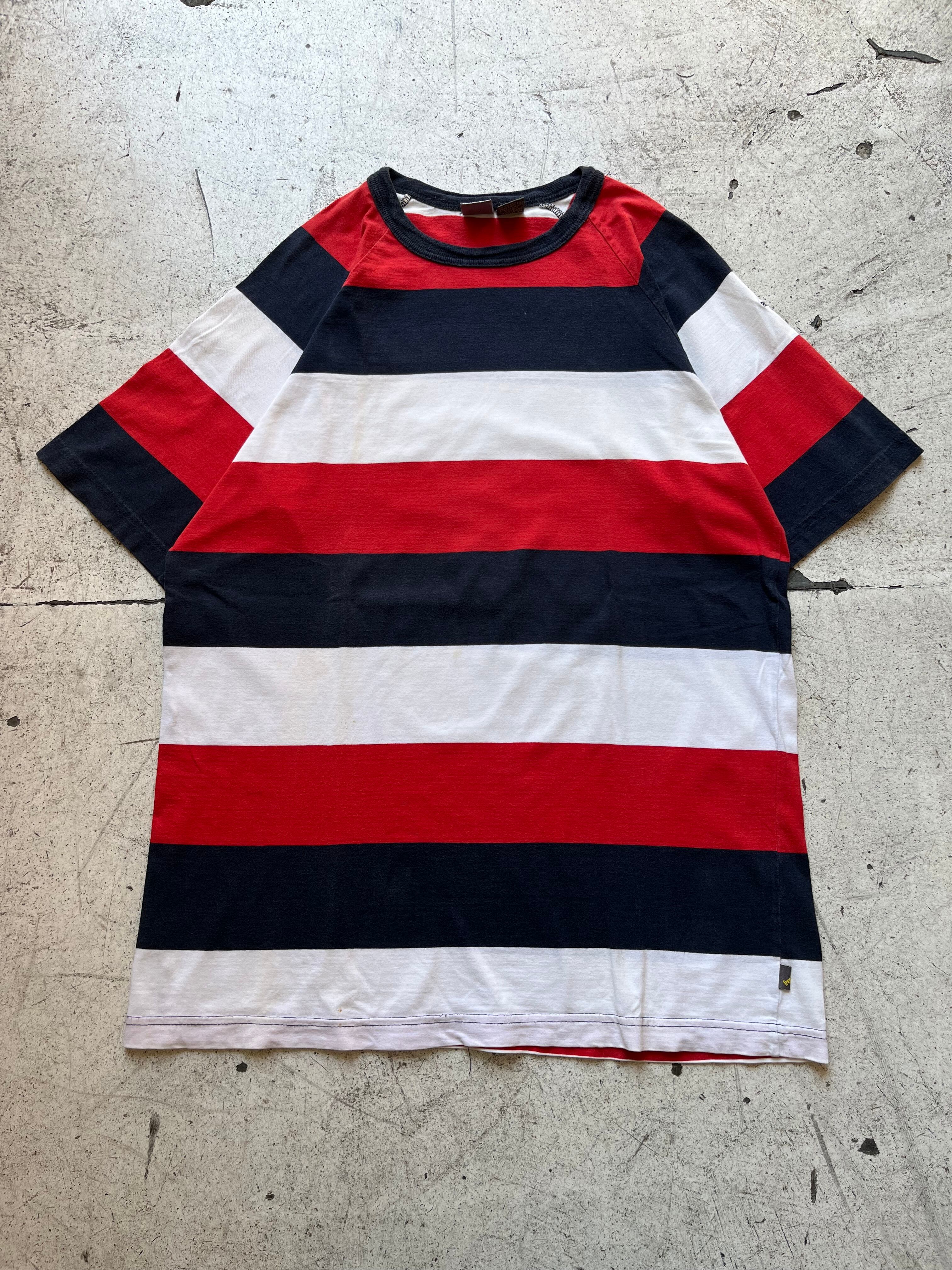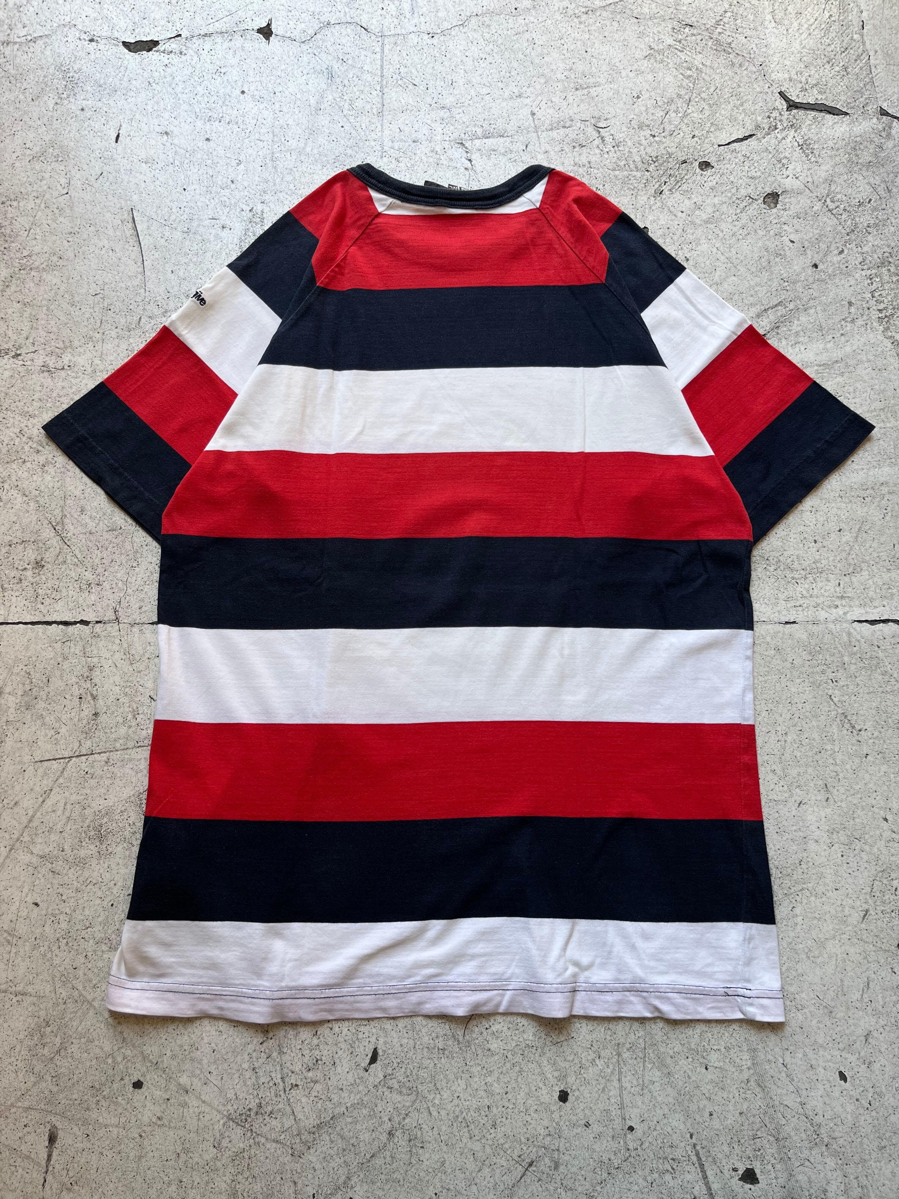 左腕にさりげなく入る刺繍のワンポイントなどアプローチが良いボーダーteeです。