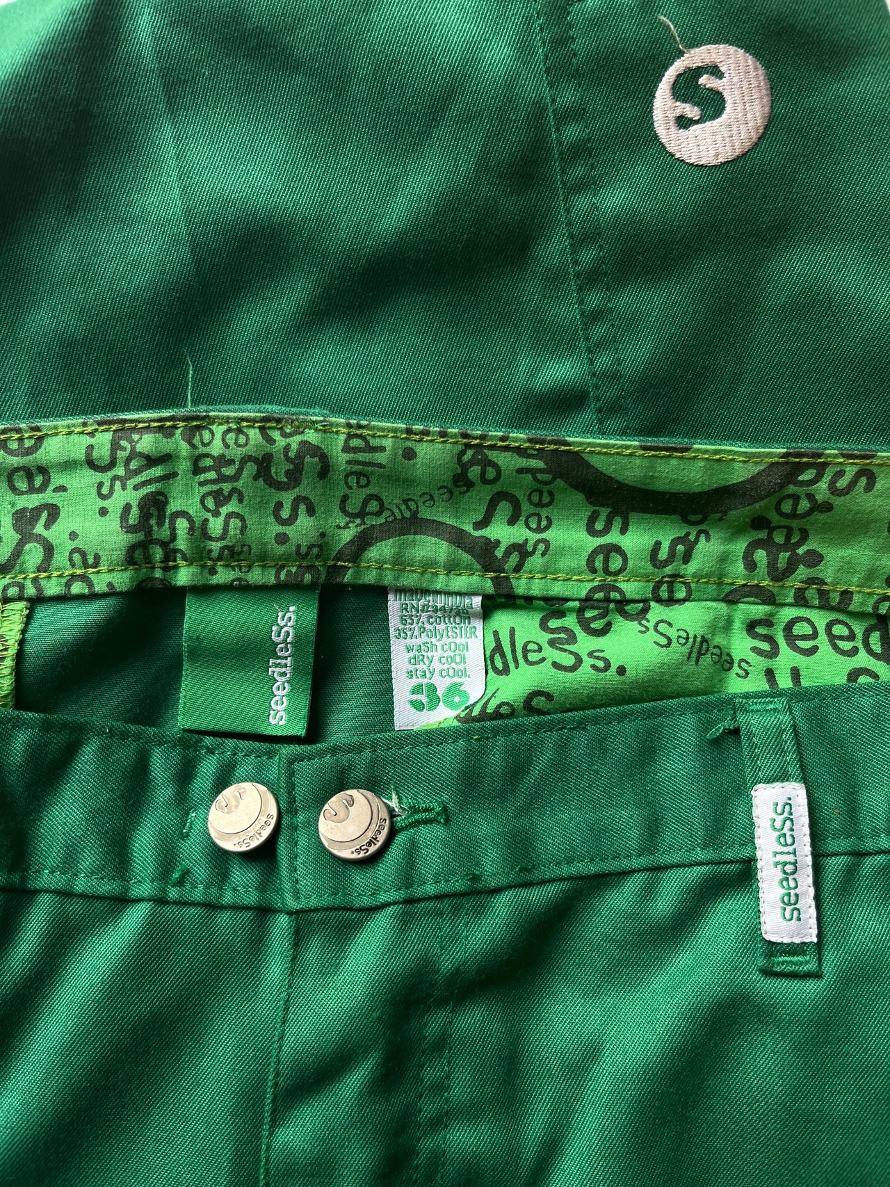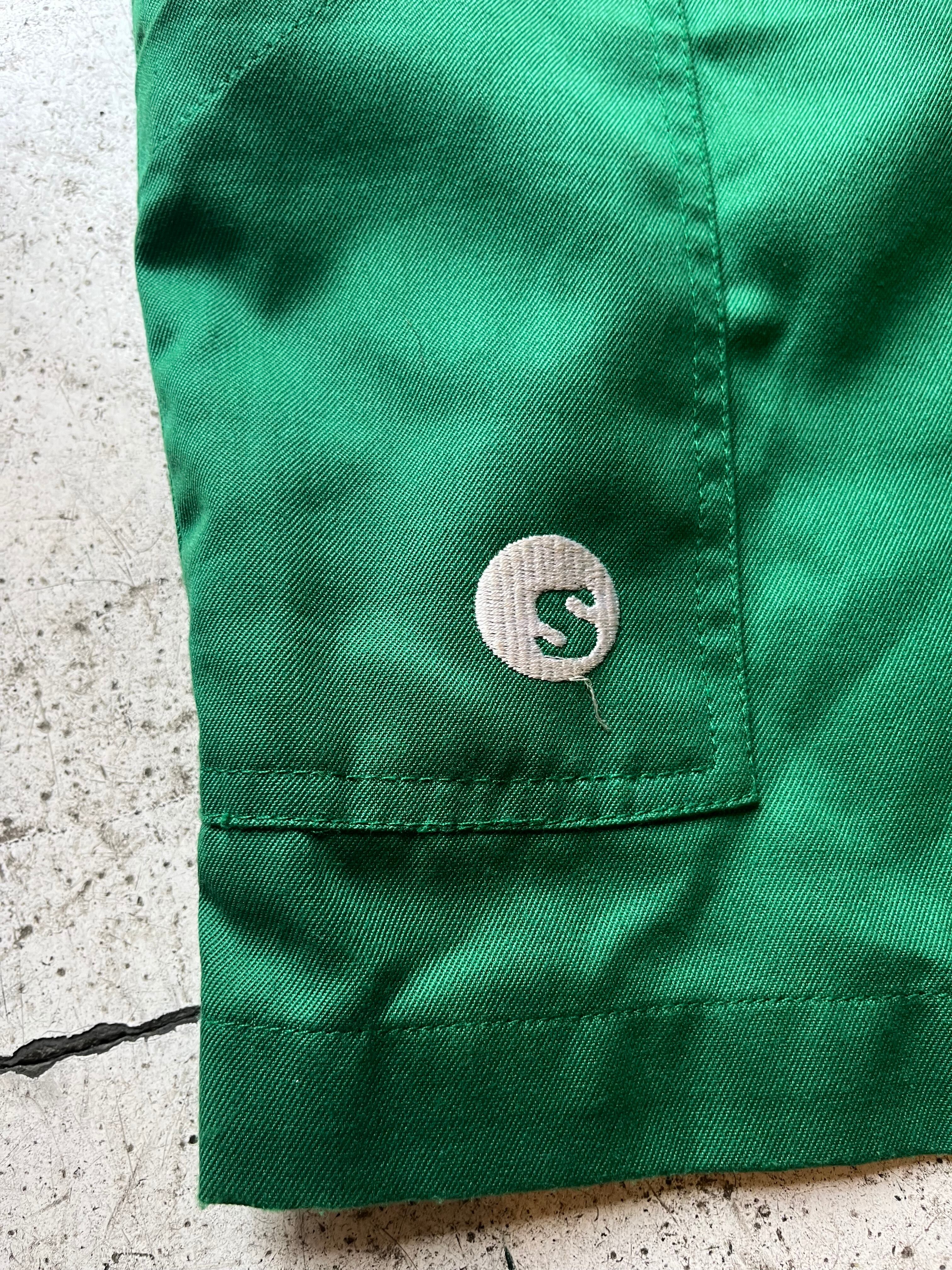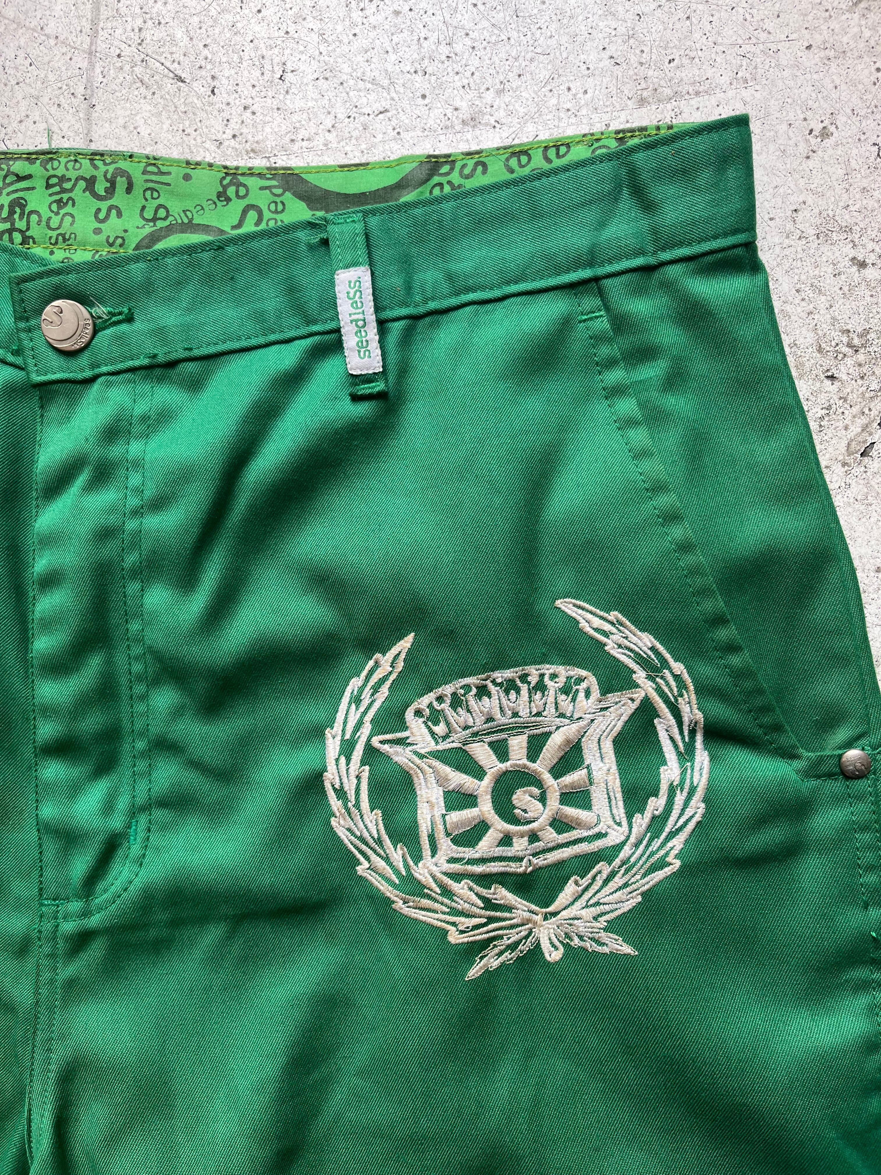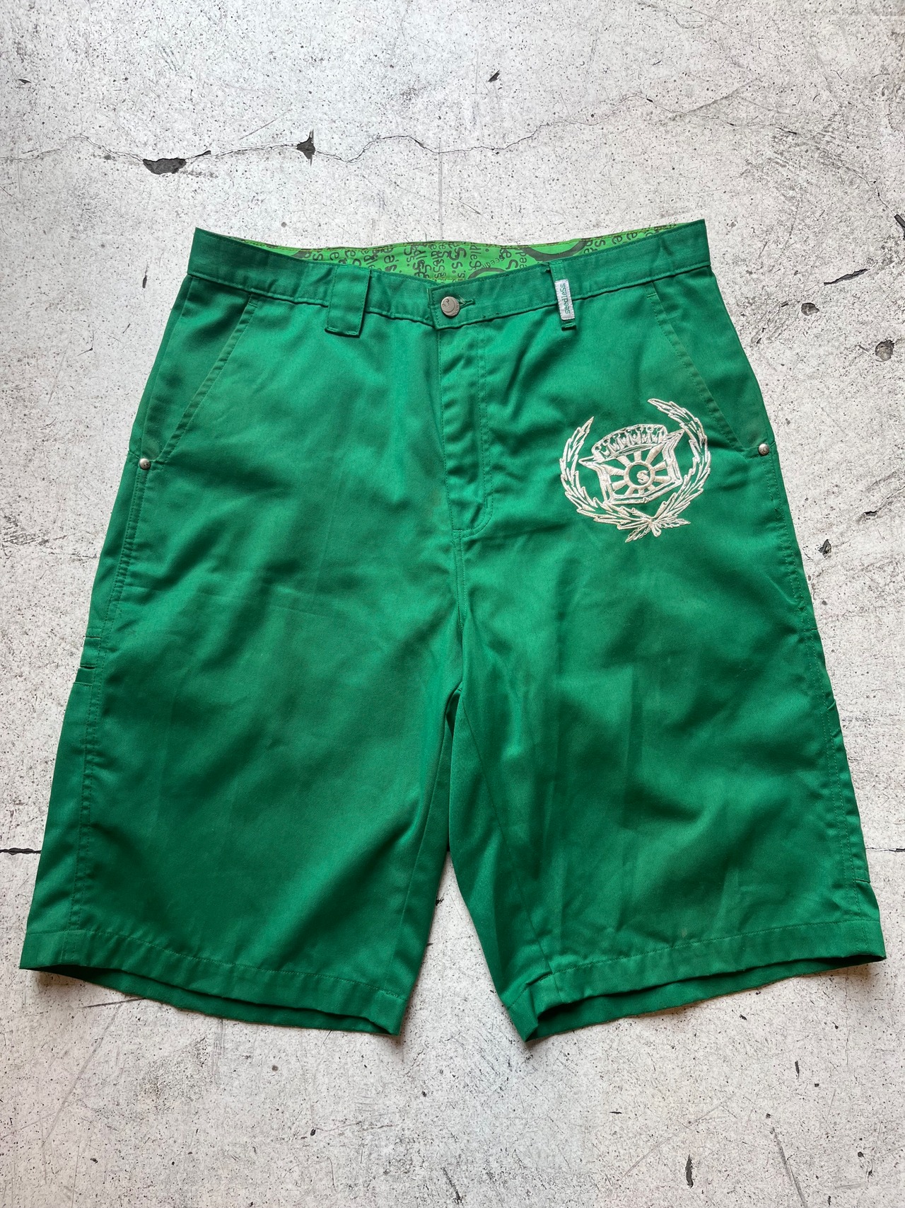 発色の良い緑に刺繍デザインなどデザインモリモリなバギーショーツです。
