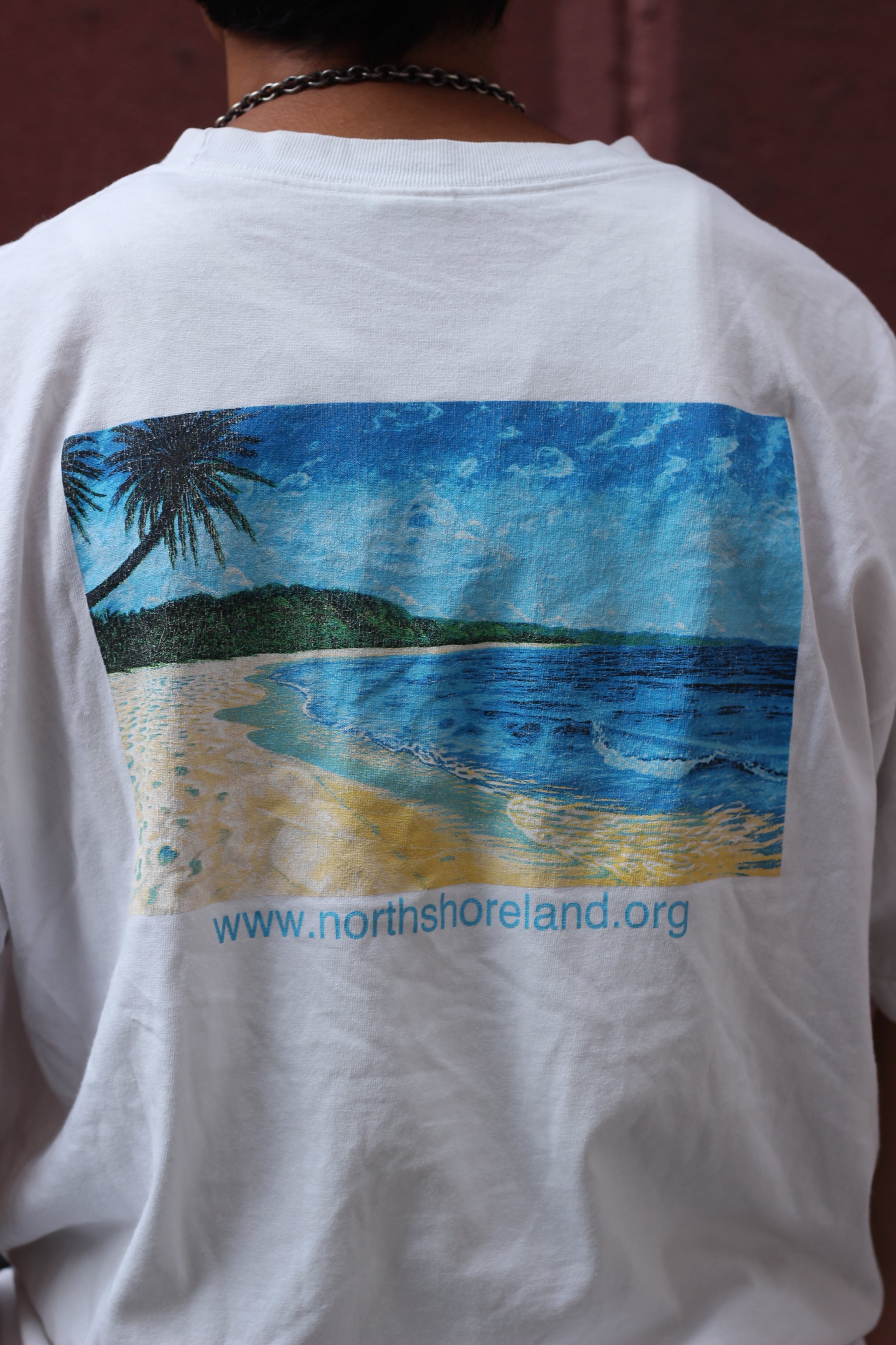 フロントには、単色の海岸、バックプリントには鮮やかな海岸と前後ろのプリントギャップが良い一着