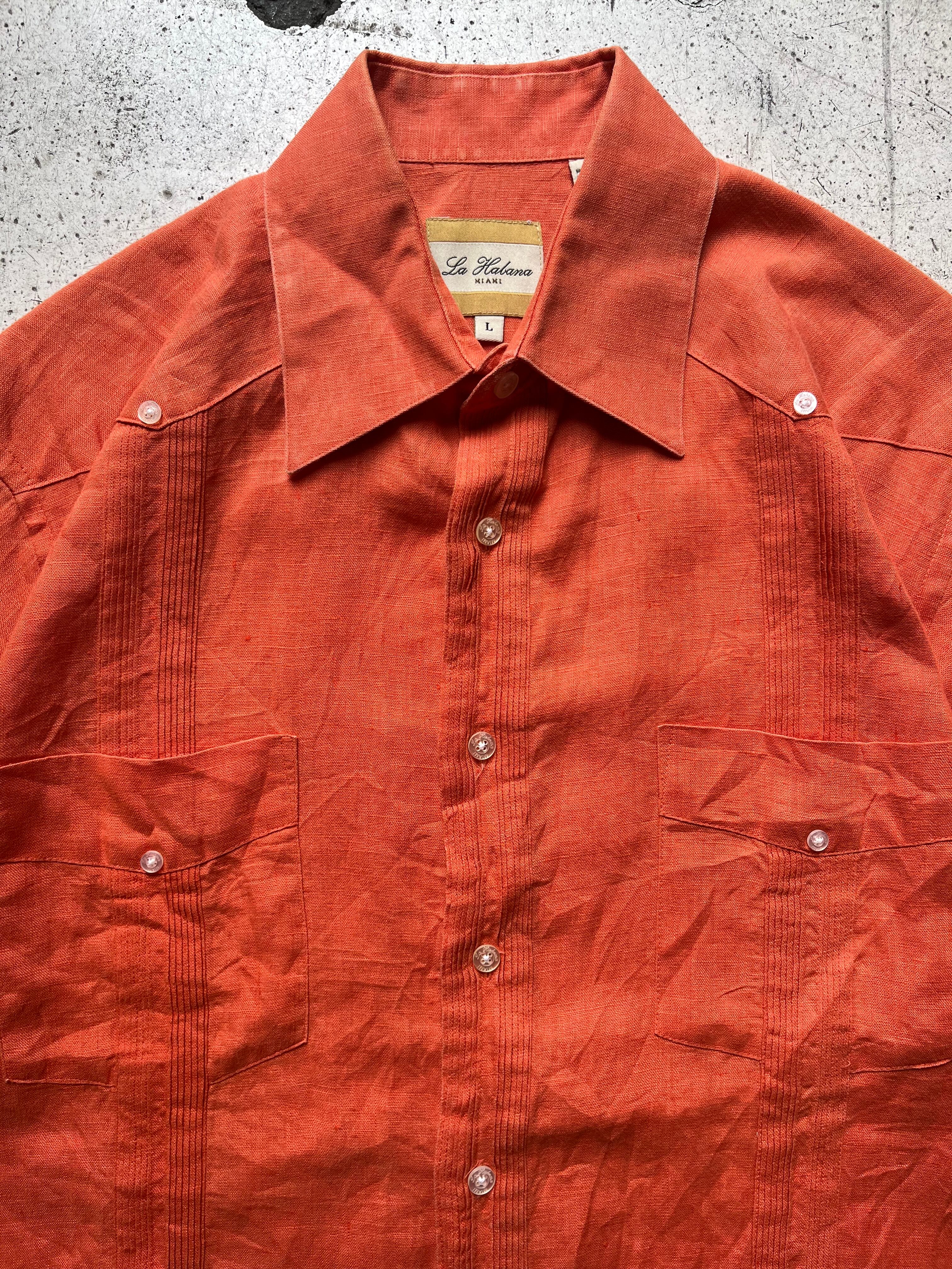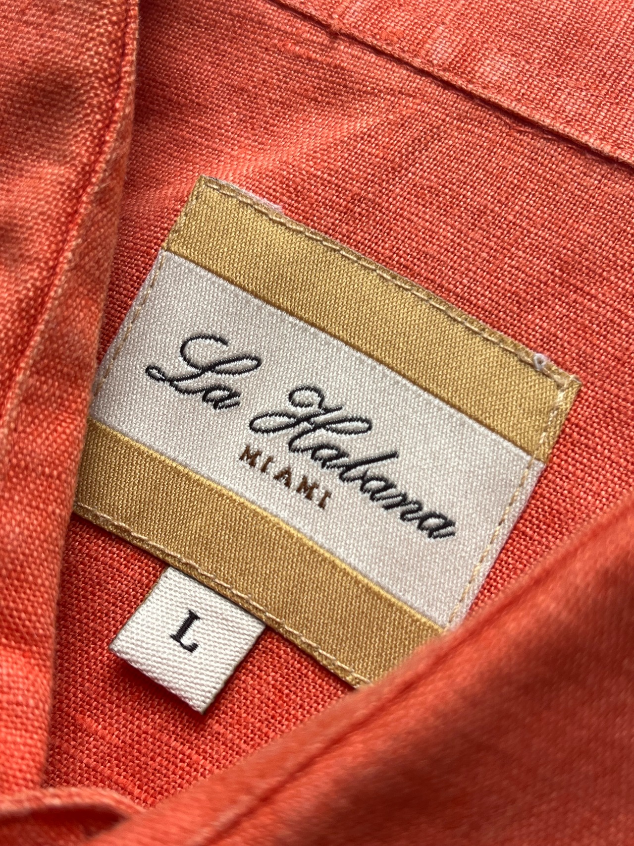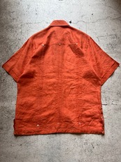リネンの柔らかな素材感に発色の良いオレンジ色夏にピッタリなカラーシャツです。