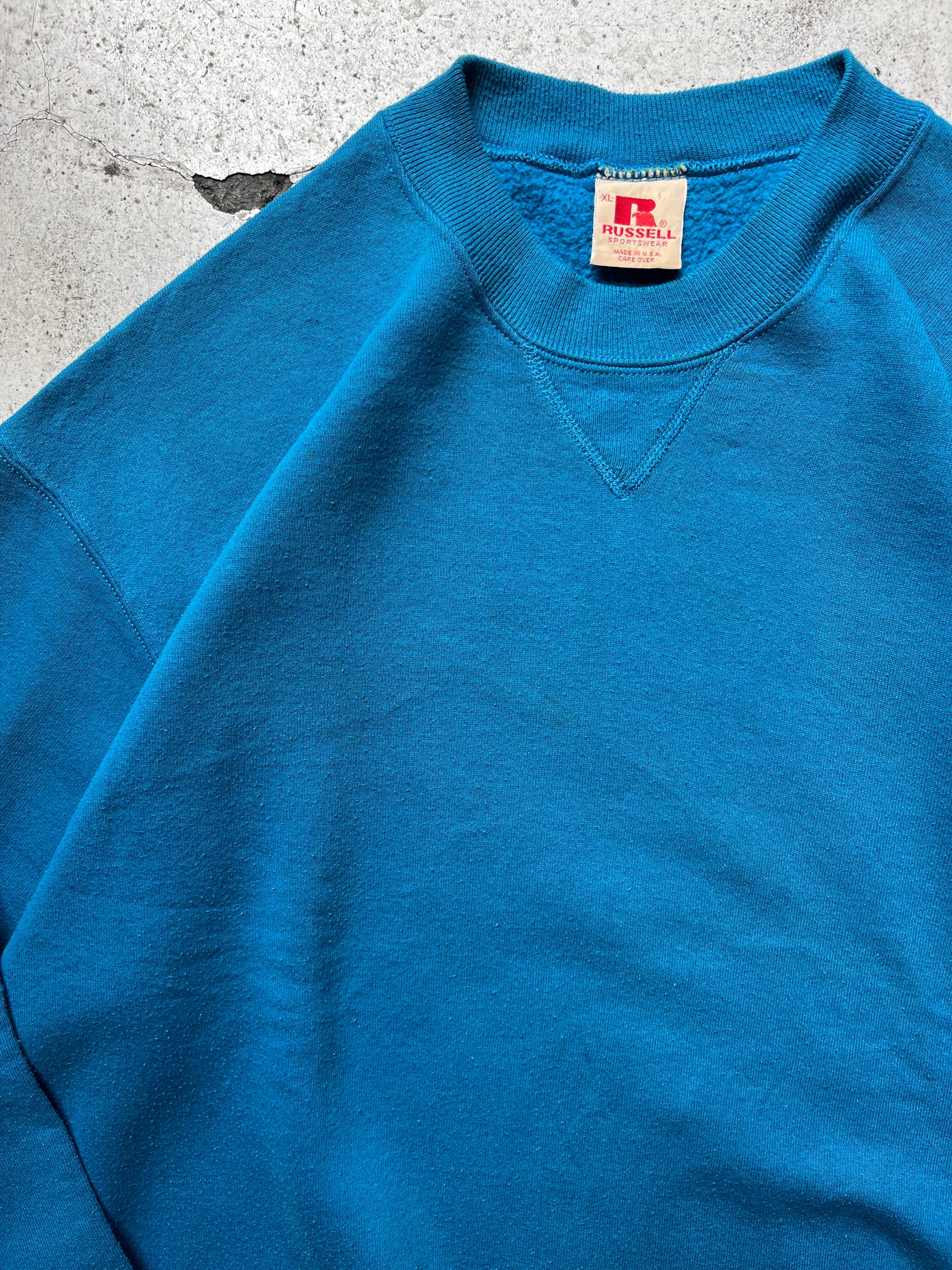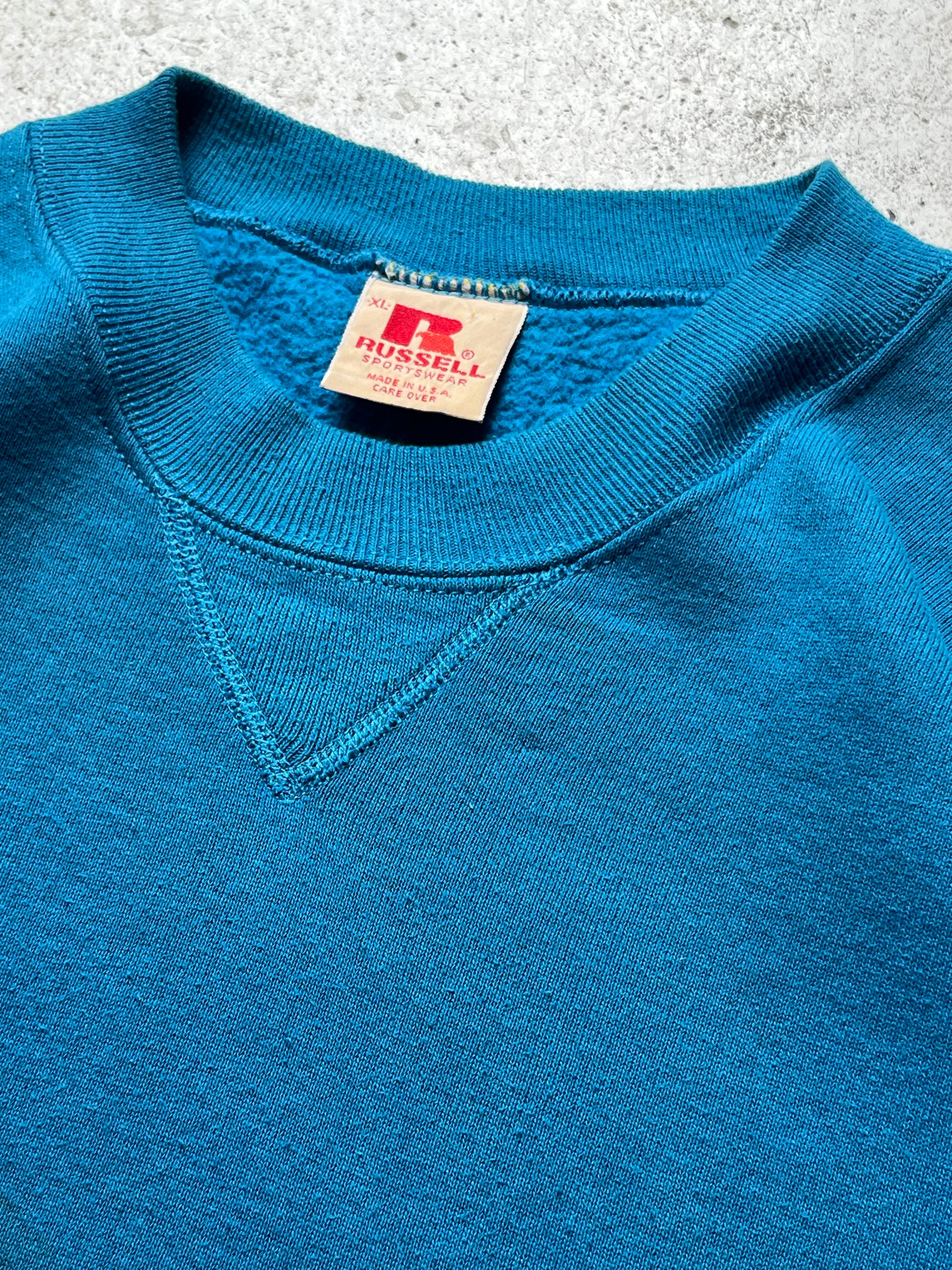 80's old Russell Vgusset plain sweat "turquoise"