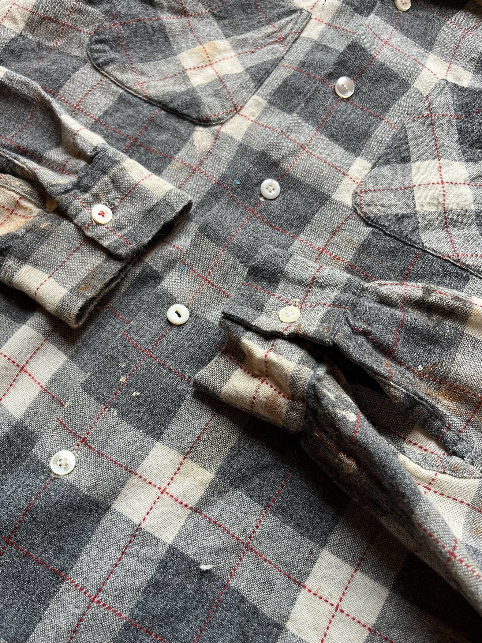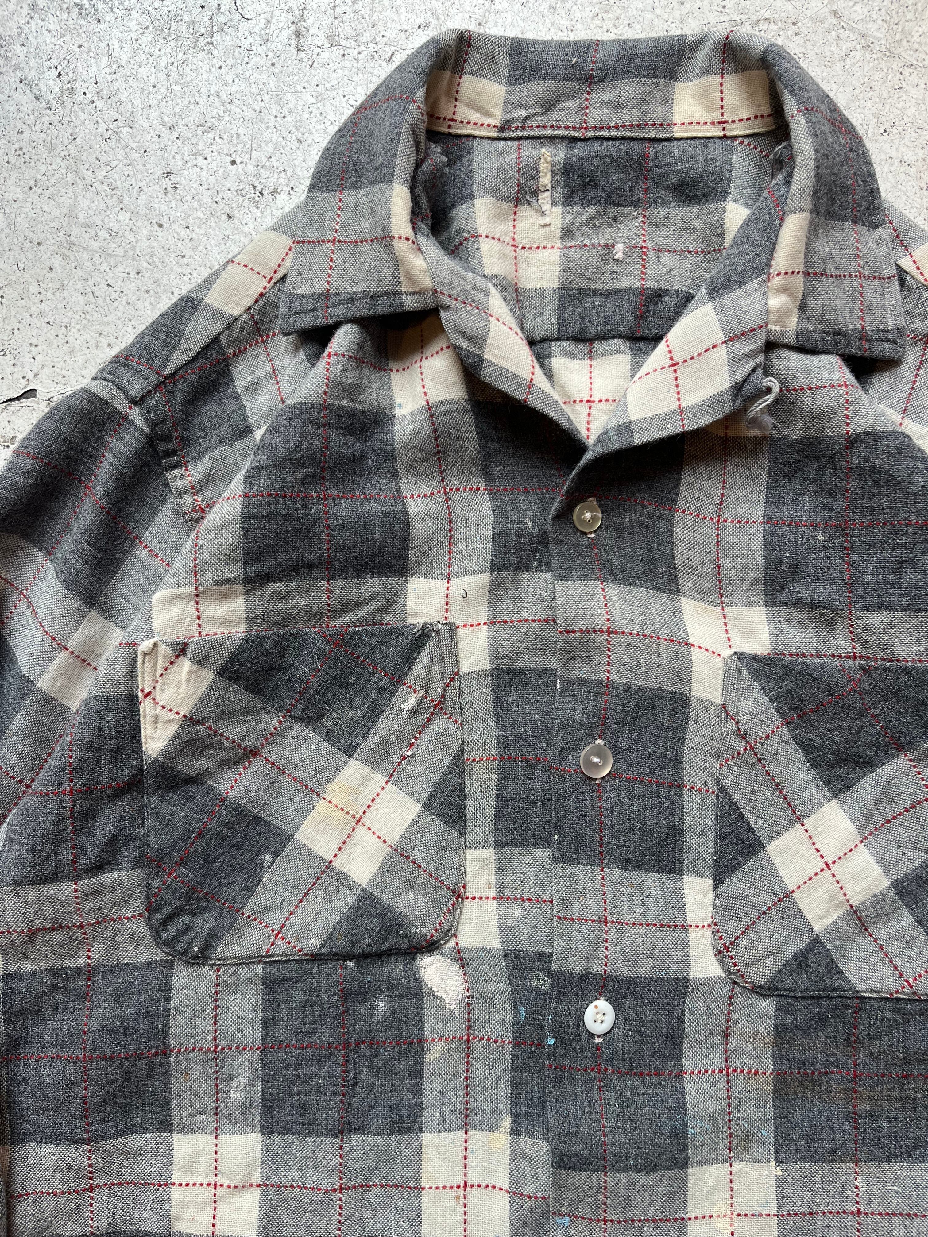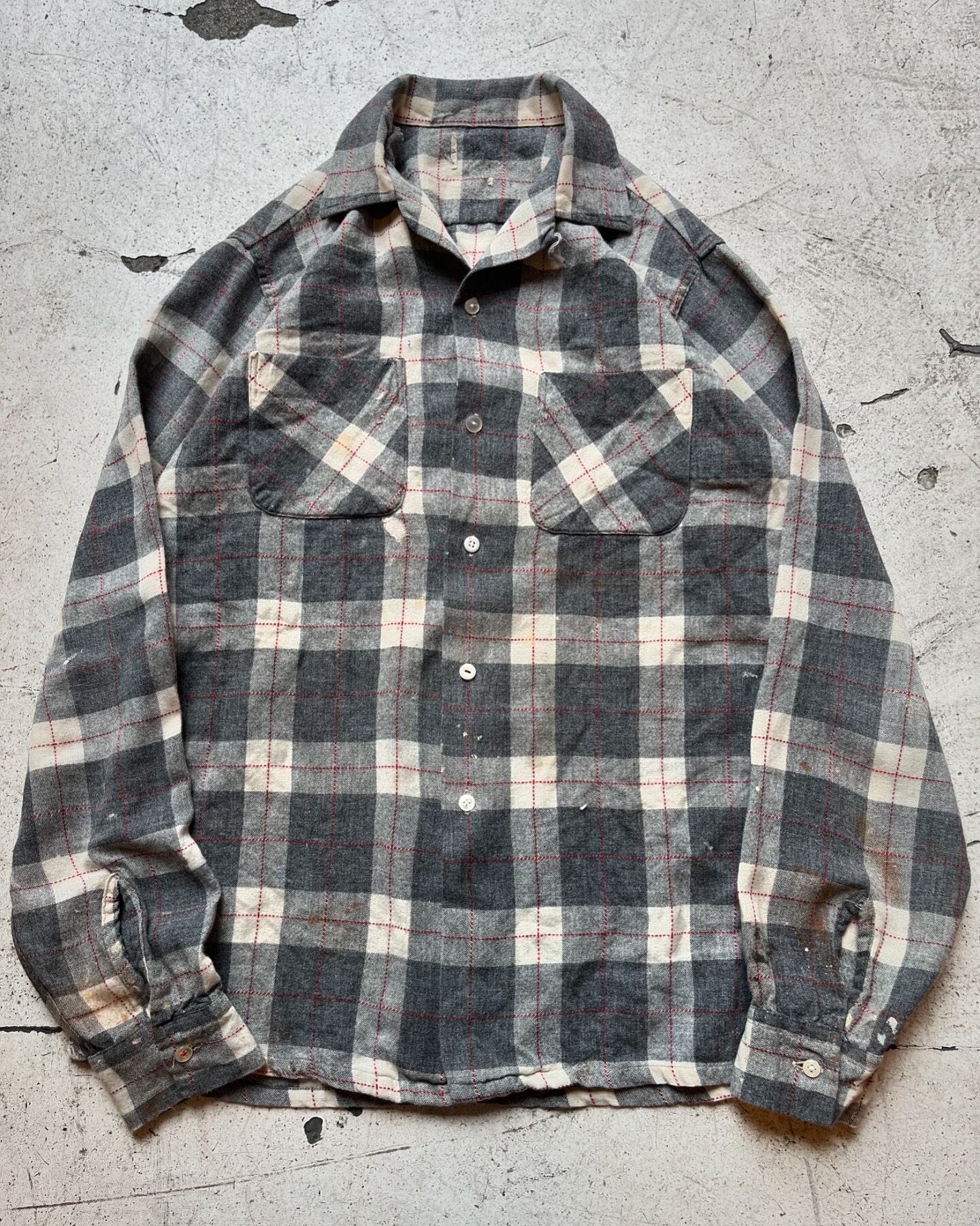ペンキが飛び散ったビンテージの開襟ウールシャツ