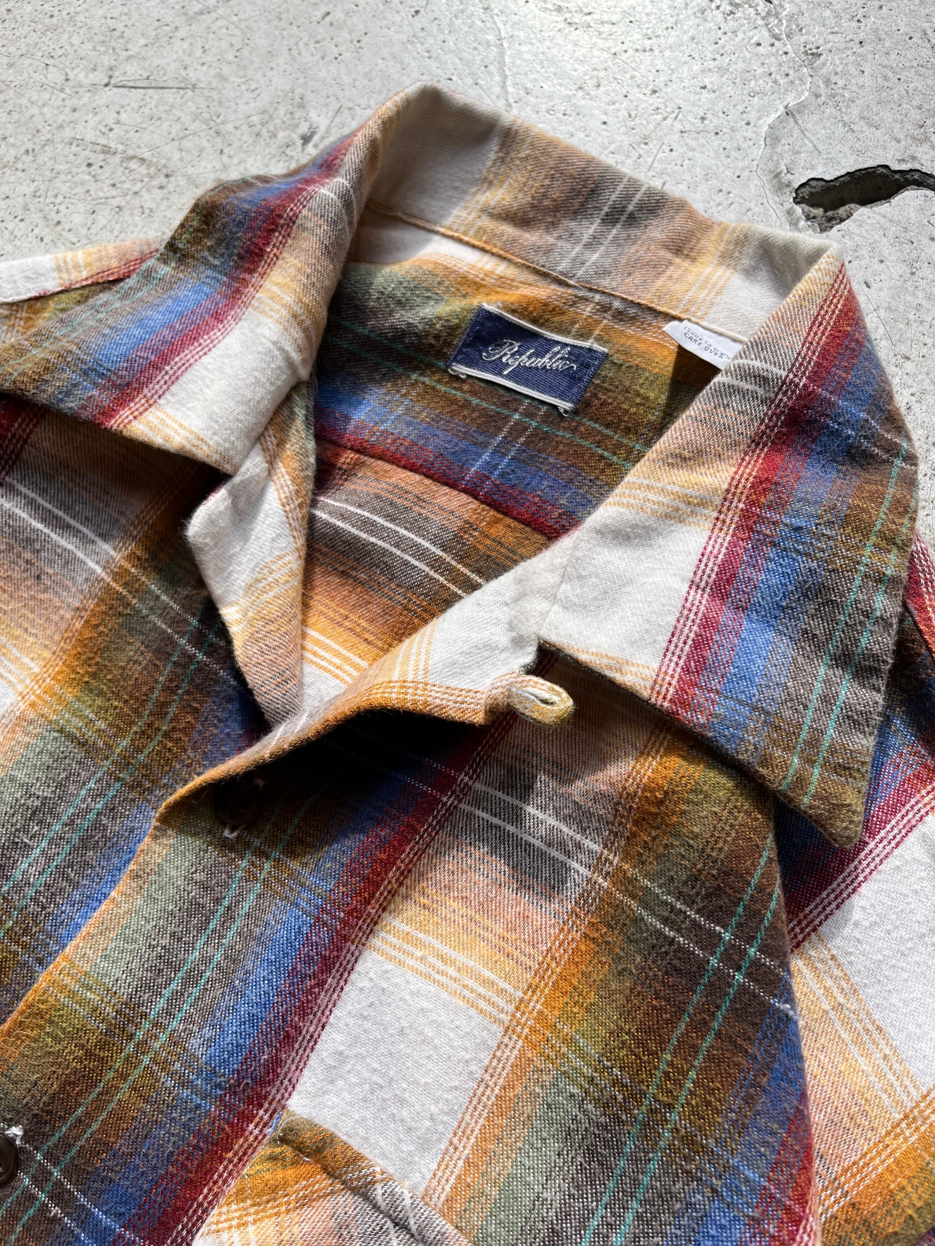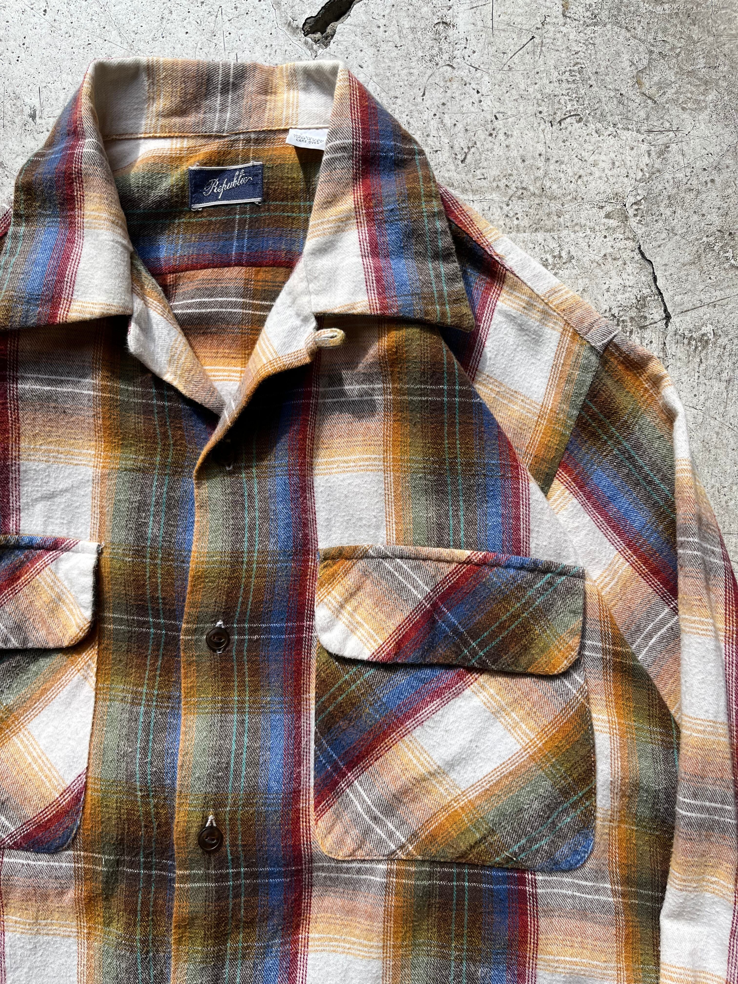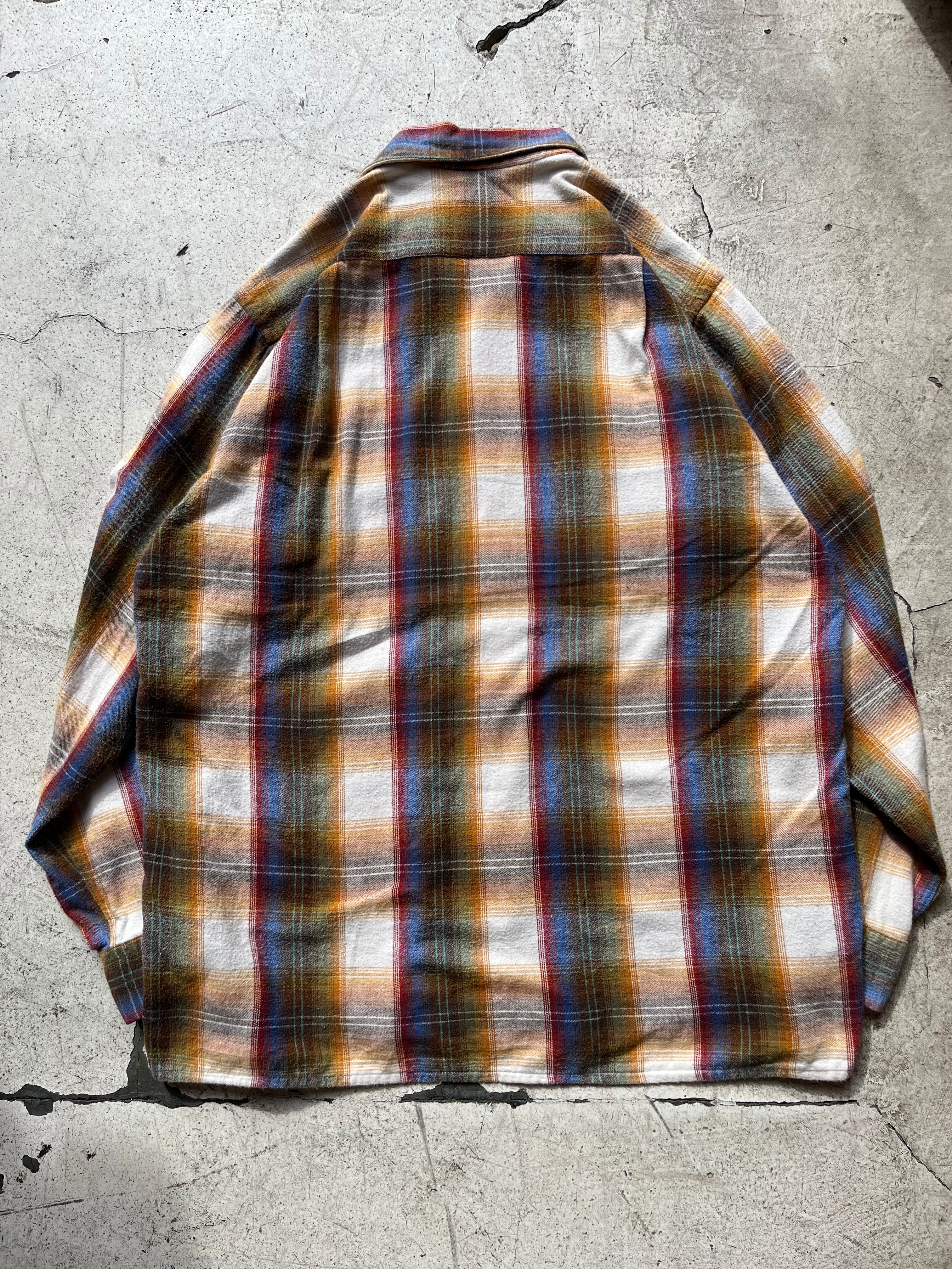 cotton flannel open collar ombre check shirt