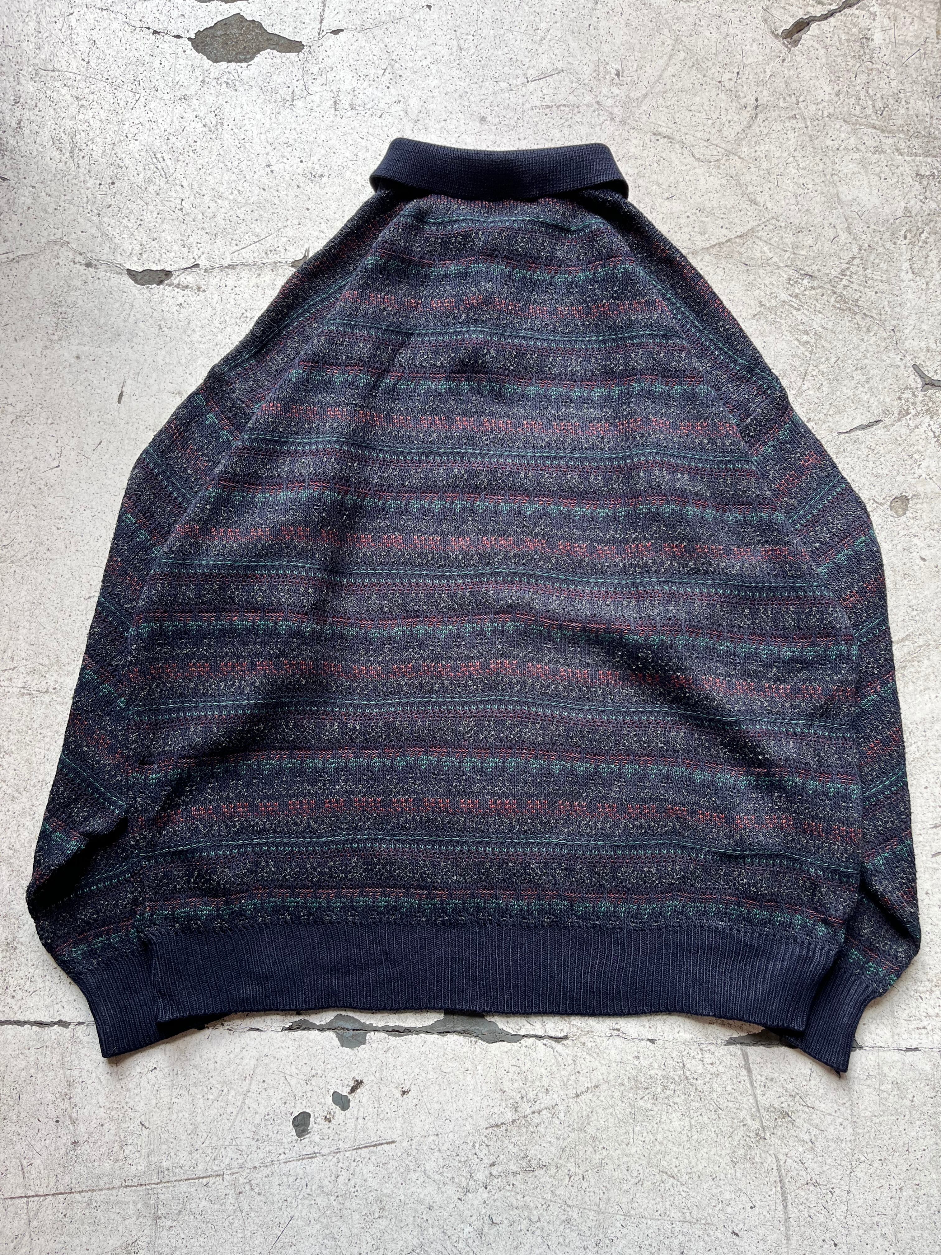 ネイビーボディにマルチカラーなデザインがやりすぎてなく着回しもしやすい一着です。