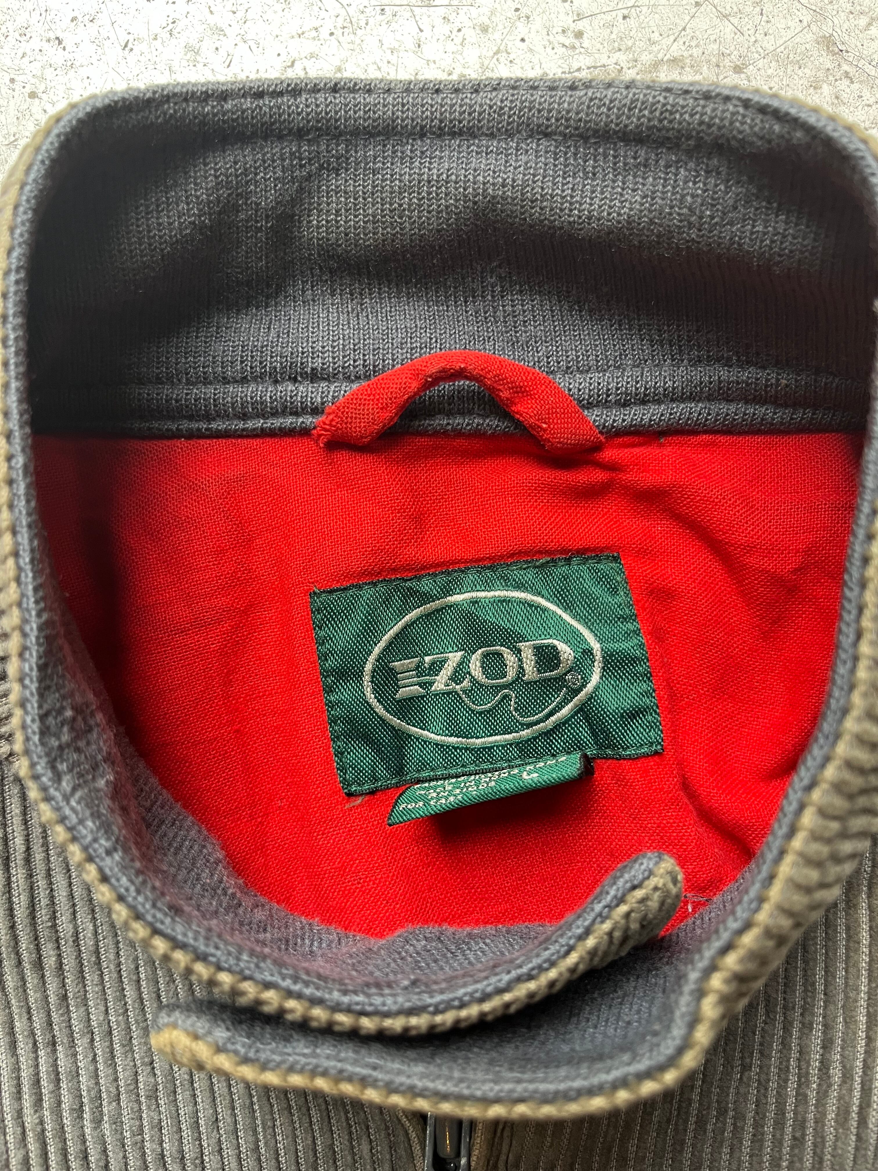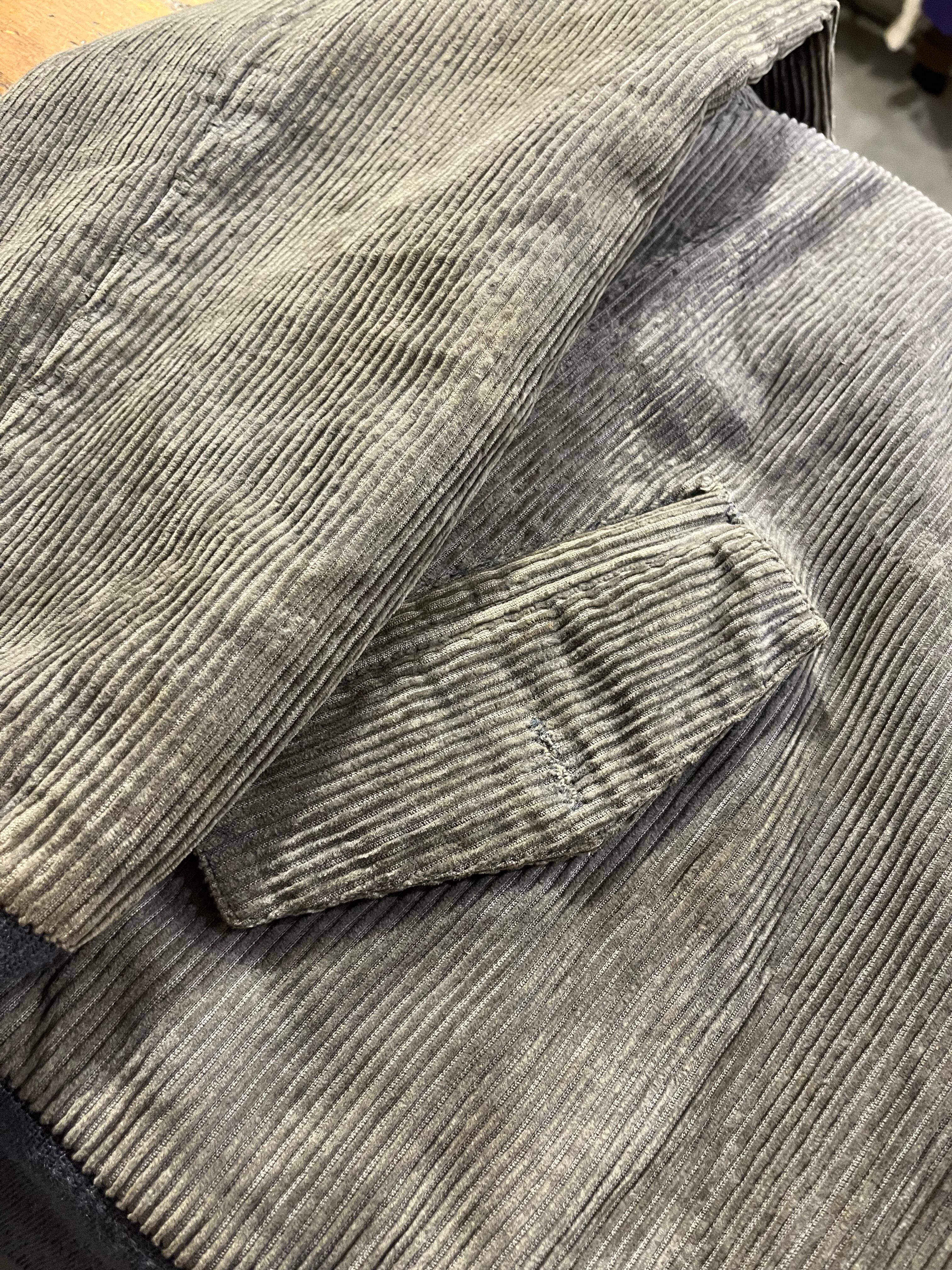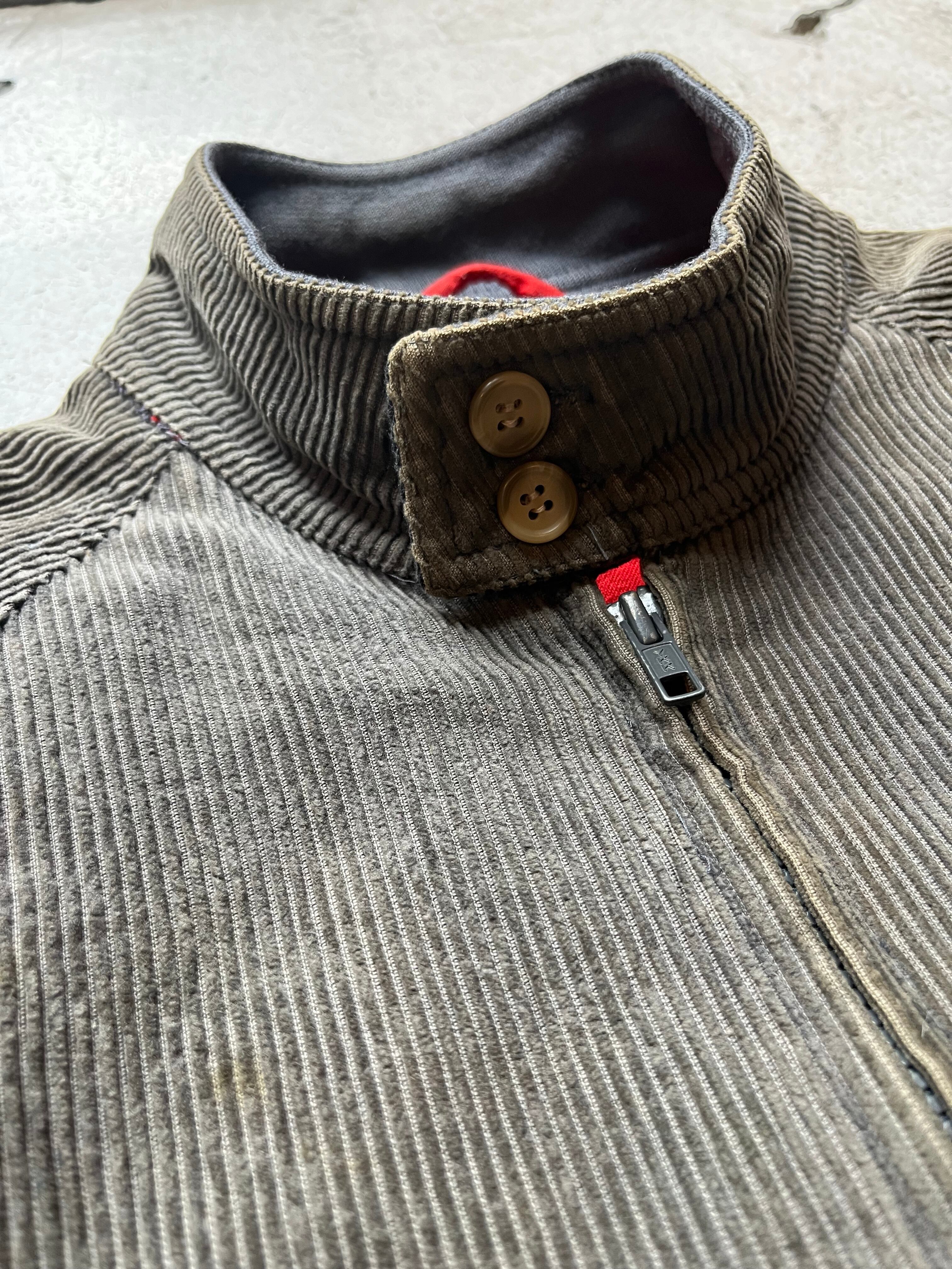 裏地の赤もグッドなコーデュロイハリントンジャケット
