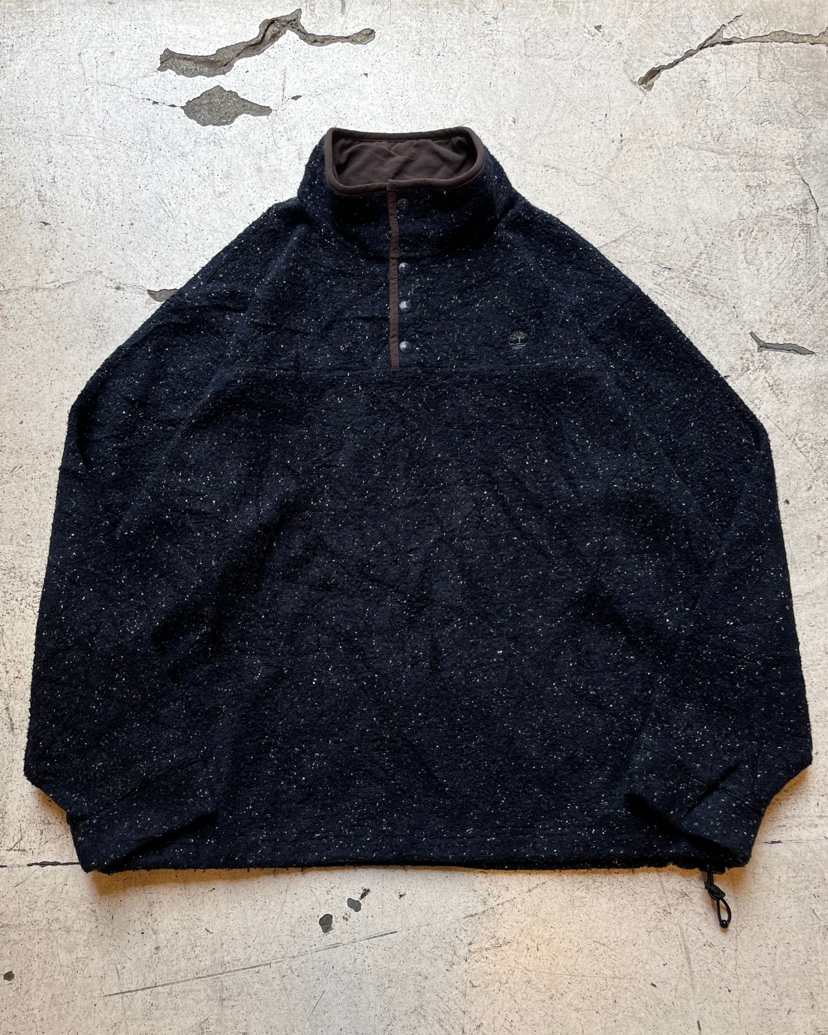 左胸ワンポイントの刺繍にネップデザインの入ったフリースプルオーバー