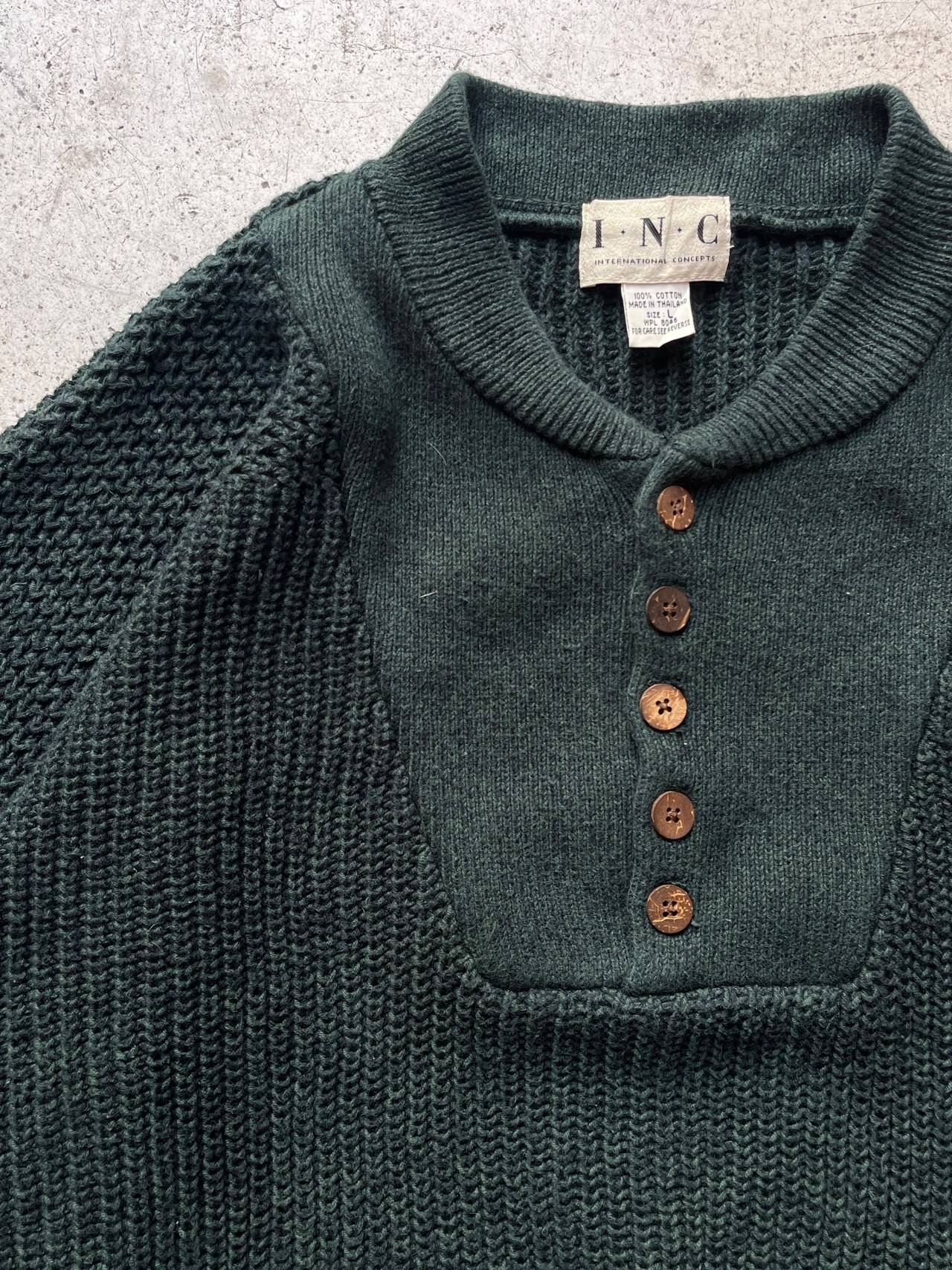 ボタン多めなデザインヘンリーネックプレーンな見た目に目を引くディテールです。