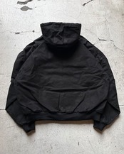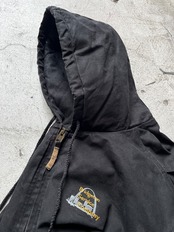 左胸に企業モノのワンポイント刺繍の入る黒のアクティブパーカー