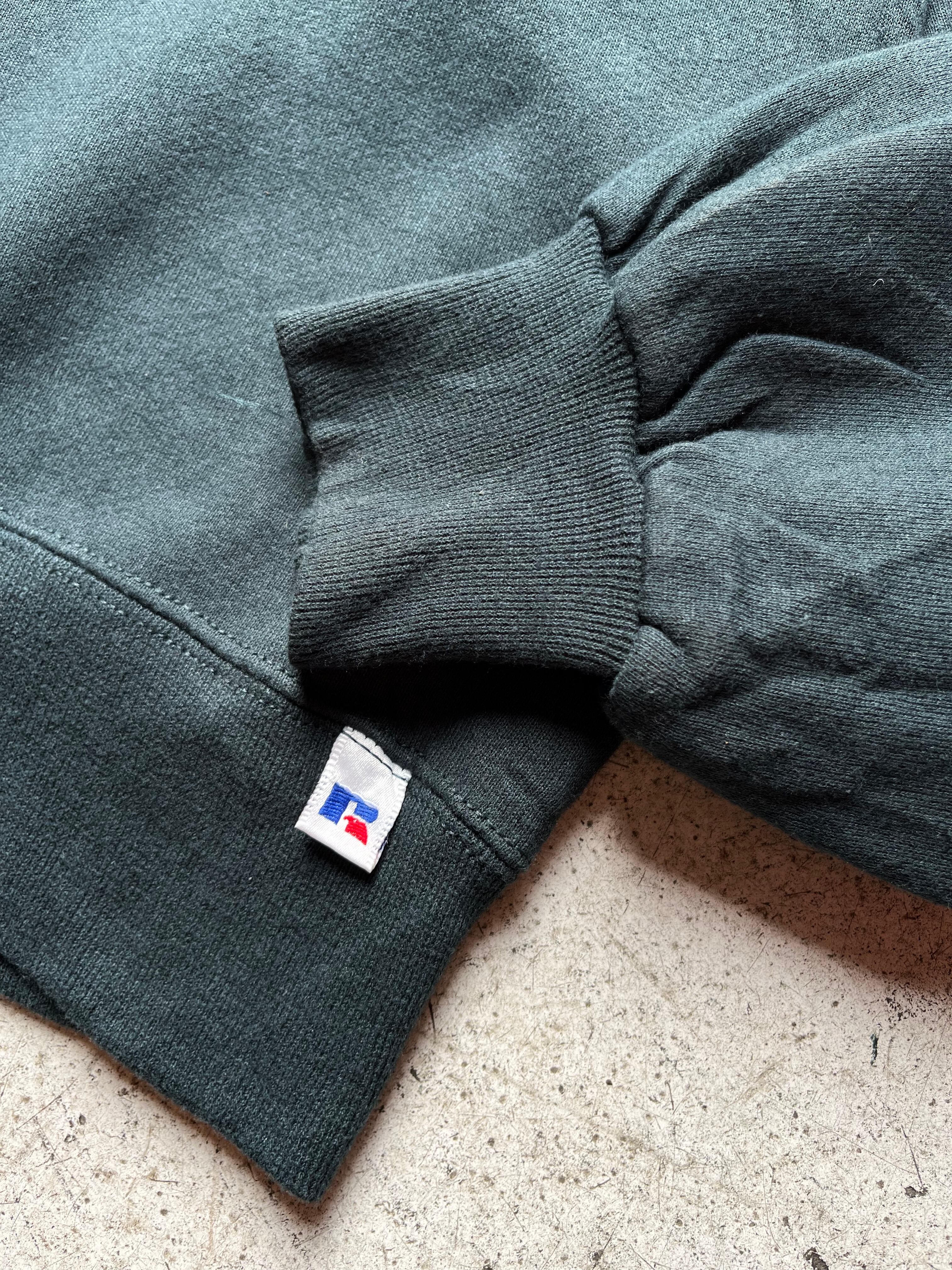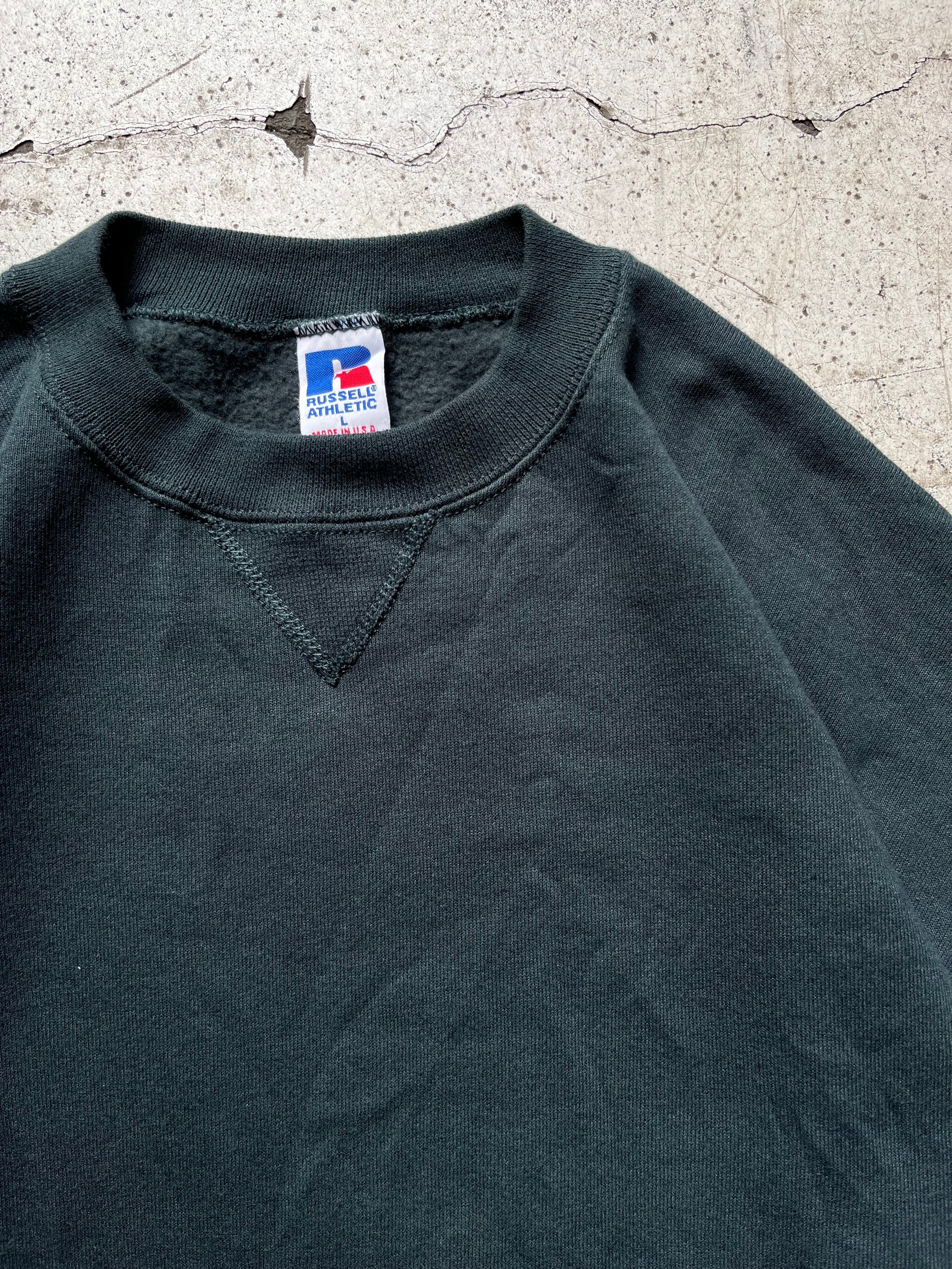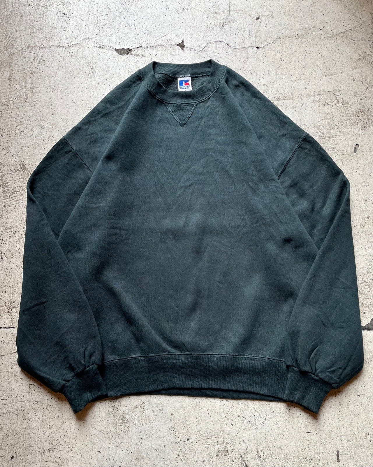 古着の定番無地スウェットととして、人気なRussell、フロントVのディテールや裾に着くミニタグなどならではのデザインも他とは違う良いデザインです。