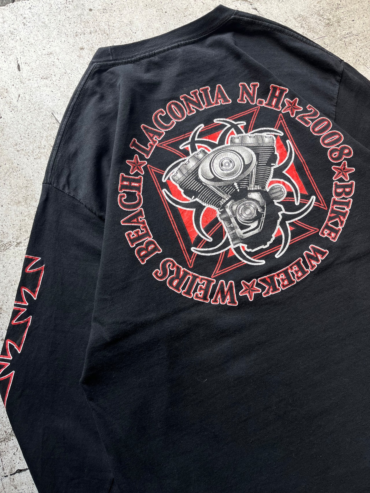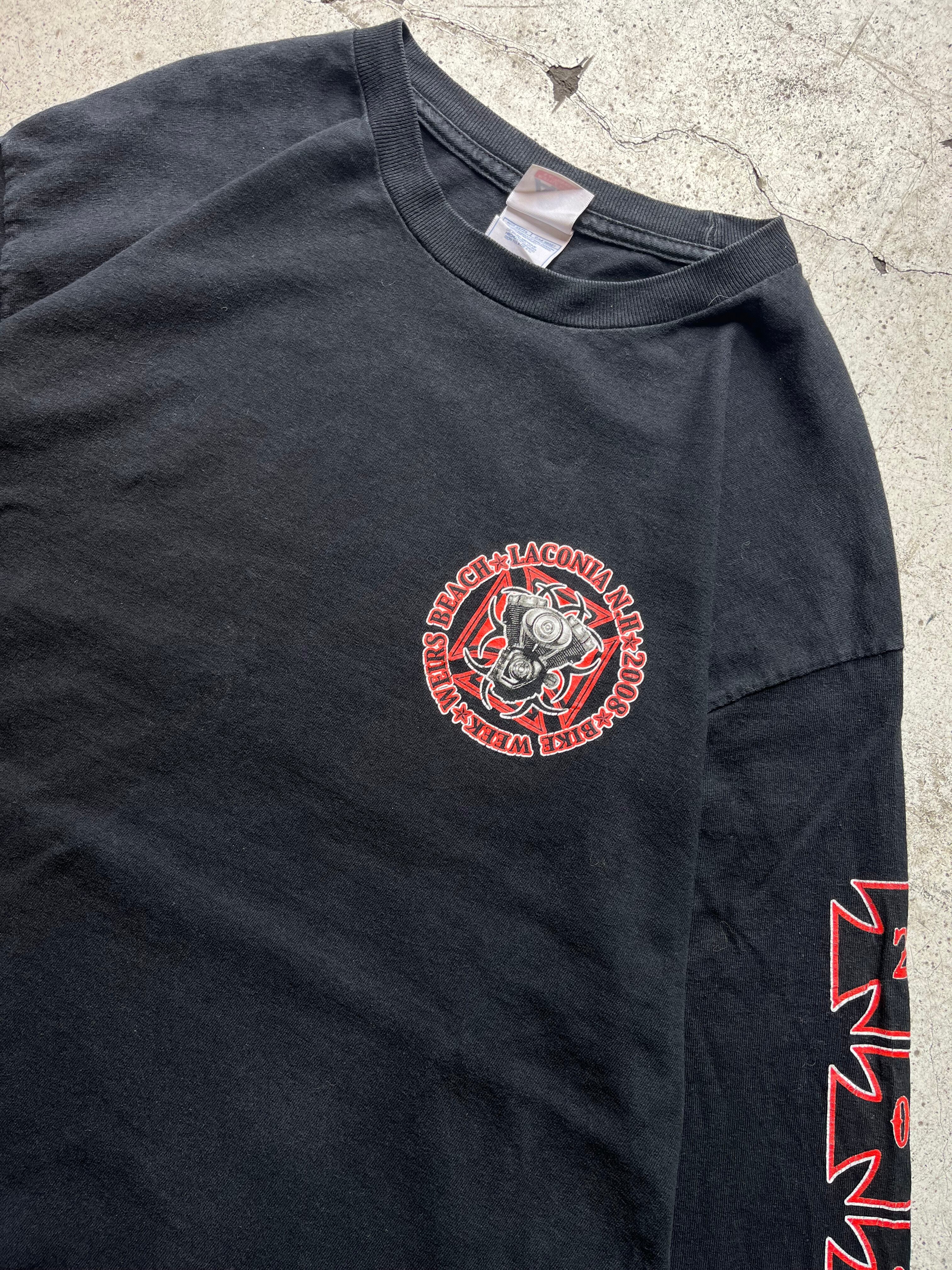 08's "BIKE WEEK" o/p&back cross design print L/S tee