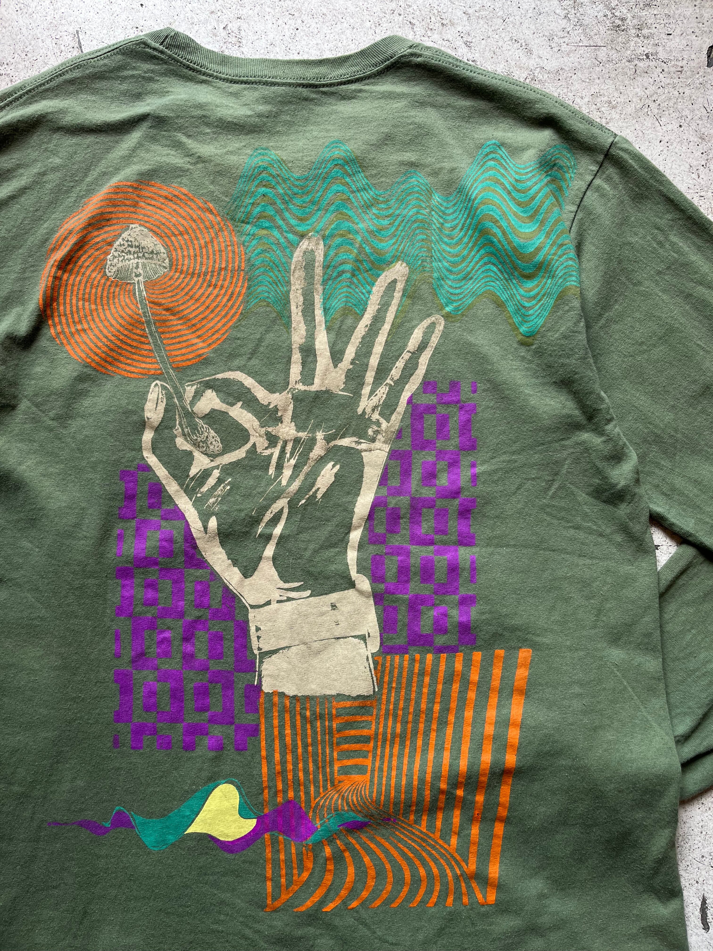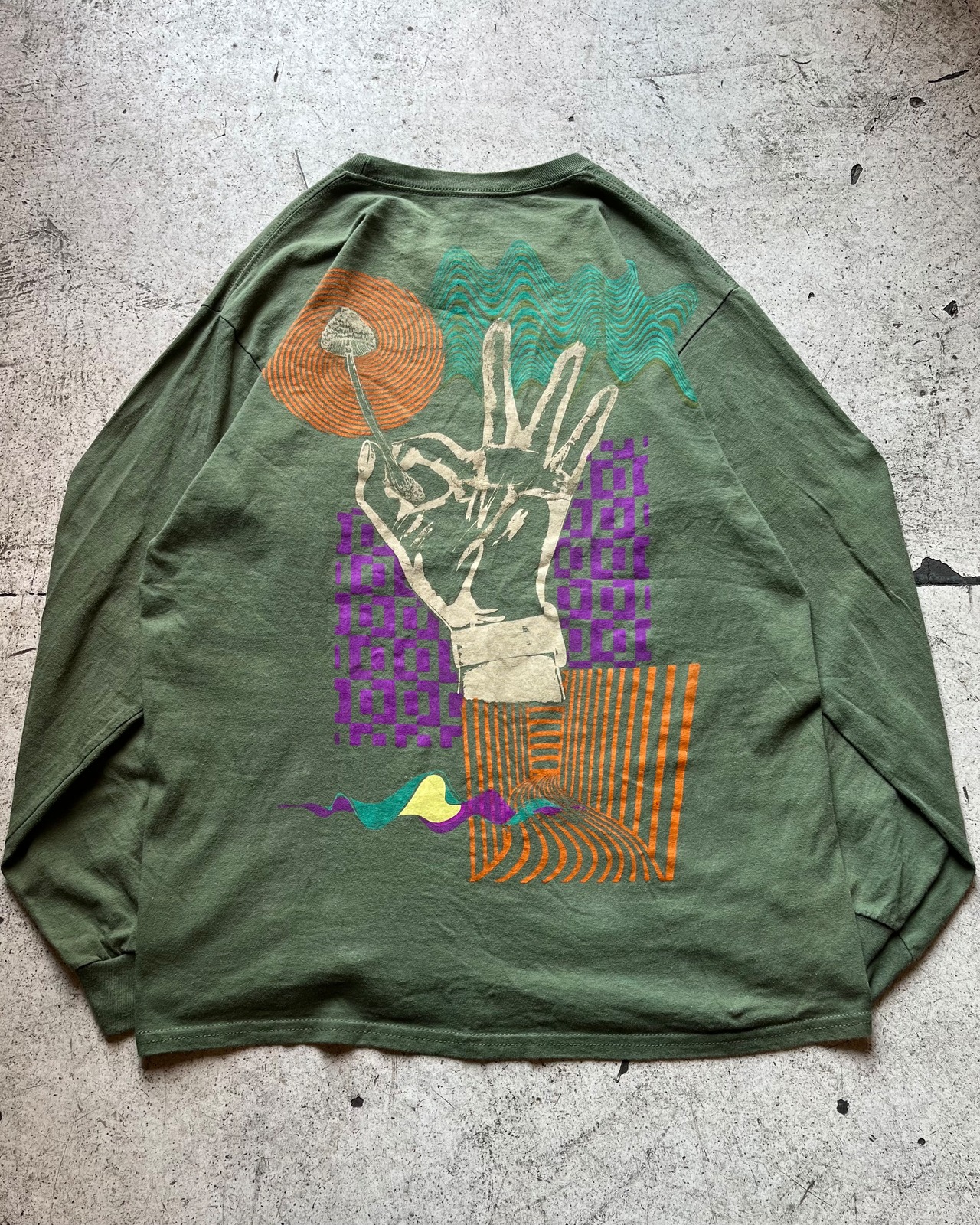 サイケ感マシマシな配色にデザインなバックプリントがグッドなプリントロンtee